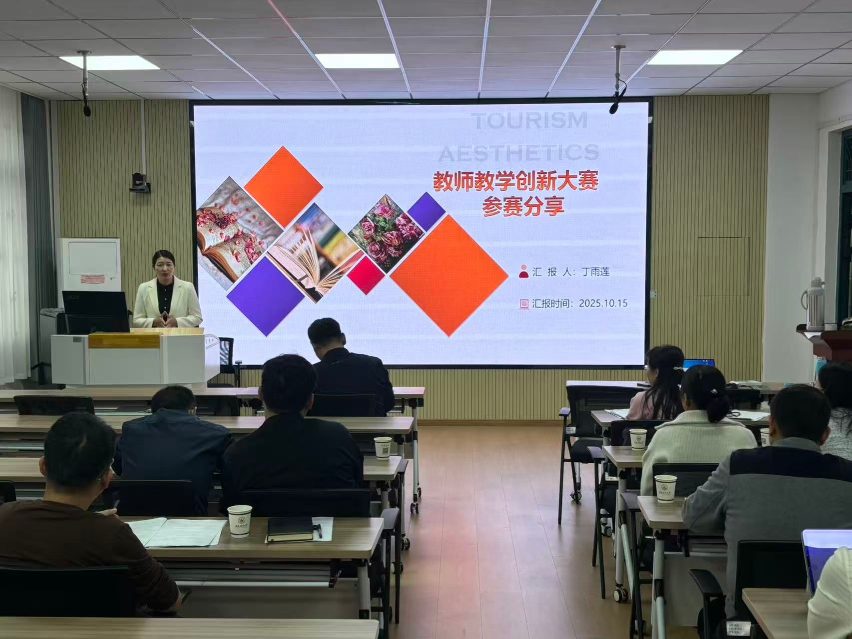 往届参赛获奖教师丁雨莲就参加教学创新大赛的各阶段流程、网络评审与现场评审等环节进行了经验交流,并分析了教学理念、课程思政、教学效果等在内的多维评分标准。她结合自身参赛经历,分享了备赛心得与创新报告撰写的关键要点,鼓励参赛教师全力投入、享受过程,并在团队协作中不断打磨作品,实现教学能力的长期积累与提升。此外,会议还邀请了校外专家进行技术指导,为参赛老师讲解了课堂实录视频的拍摄要点与注意事项。