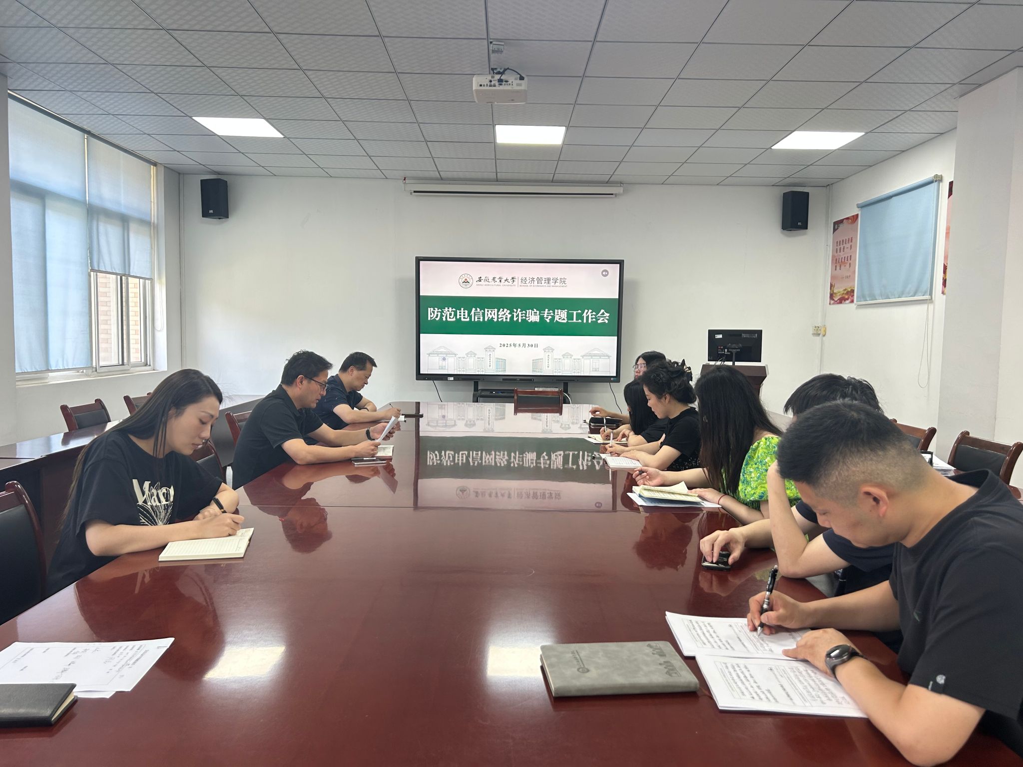 本网讯 为提升学院师生防范电信网络诈骗的意识与能力,5月30日上午,学院在经管楼 304 会议室召开防范电信网络诈骗专题工作会议。会议由学院党委副书记、纪委书记周涛主持,全体专兼职辅导员参会。