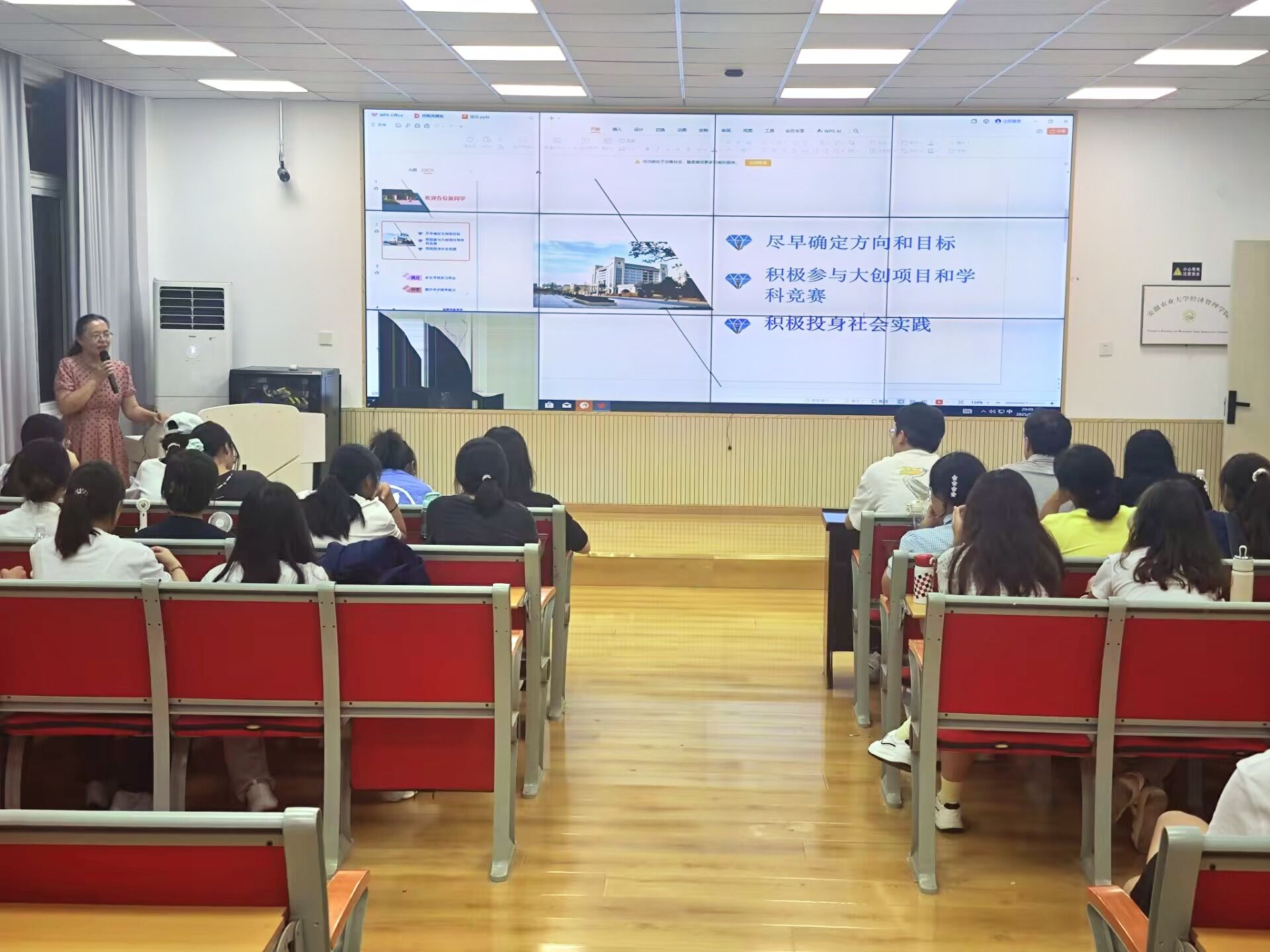 沈洁寄语新生要尽早确立人生发展方向和学习目标,积极参与各类学科竞赛及社会实践活动,不断拓宽视野、锻炼能力。她建议,计划就业的同学主动寻求实习机会,积累实践经验;有志深造的同学则要着力提升学术研究能力。她鼓励大家“学得精彩、活得精彩”,在安农书写无悔的青春篇章。