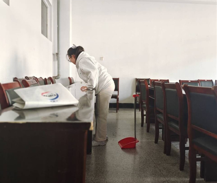 活动中,志愿者全面进入“战斗”状态。他们准时集合于经管楼,分工明确,态度积极。从经管楼景观带到教学楼、从楼梯过道到卫生死角,开启全方位清扫。活动持续半小时,共清扫教室10余间,在这背后,不仅仅是责任和义务,更是善良奉献等诸多美德。志愿者们不怕脏、不怕苦、不怕累,正体现了全心全意为人民服务的“雷锋精神”。