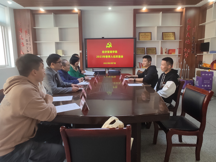本网讯 3月7日下午,经济管理学院在302会议室顺利举办2023年春季入伍新兵欢送会。学院党委书记赵智、副院长宋燕平、副院长田涛、相关老师、2019级金融学专业赵翔和2021级农村发展专业于晓冲参加了此次会议。会议由院党委副书记、纪委书记、副院长吴国卿主持。