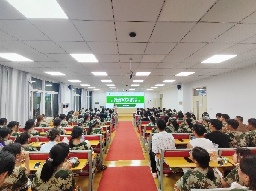 本网讯 在金秋送爽、硕果累累的季节中,安徽农业大学经济管理学院经济系迎来了朝气蓬勃的2024级新生。为了帮助新生们更好地适应大学生活,明确学习目标,规划未来职业道路,经济系于9月6日晚在学院的103会议室隆重举办了2024级新生入学教育大会。会议由经济系主任王艳荣主持。