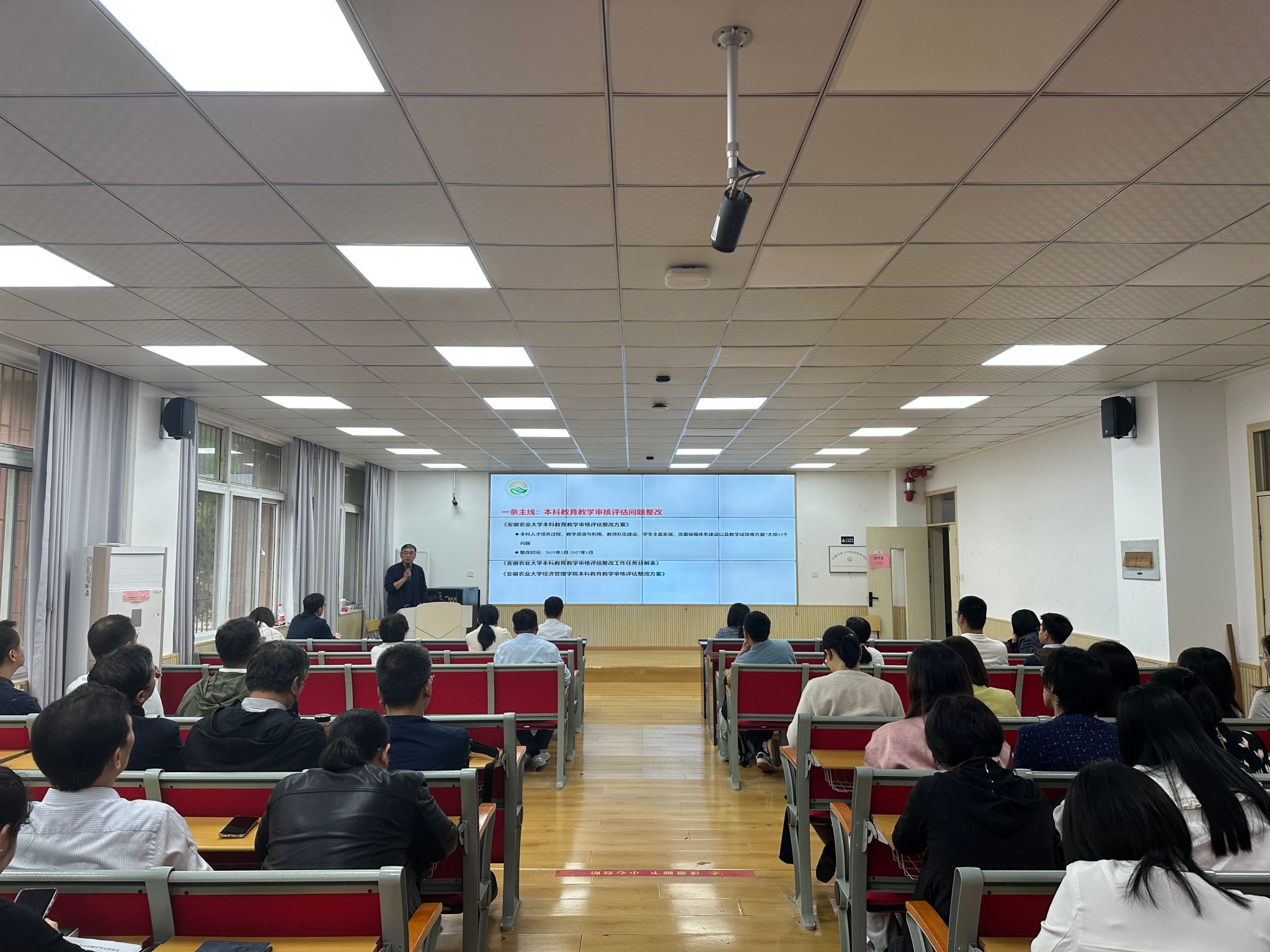 会上传达了学校关于本科教育教学审核评估整改工作的总体要求,并围绕评估专家组反馈意见,系统梳理了学院在课程思政建设、实践教学体系、教学质量监控、师资队伍建设等方面存在的突出问题。会议强调,整改工作要立足立德树人根本任务,以问题为导向,以目标为牵引,做到“立行立改与长效建设相结合”,确保整改措施落实落细。
