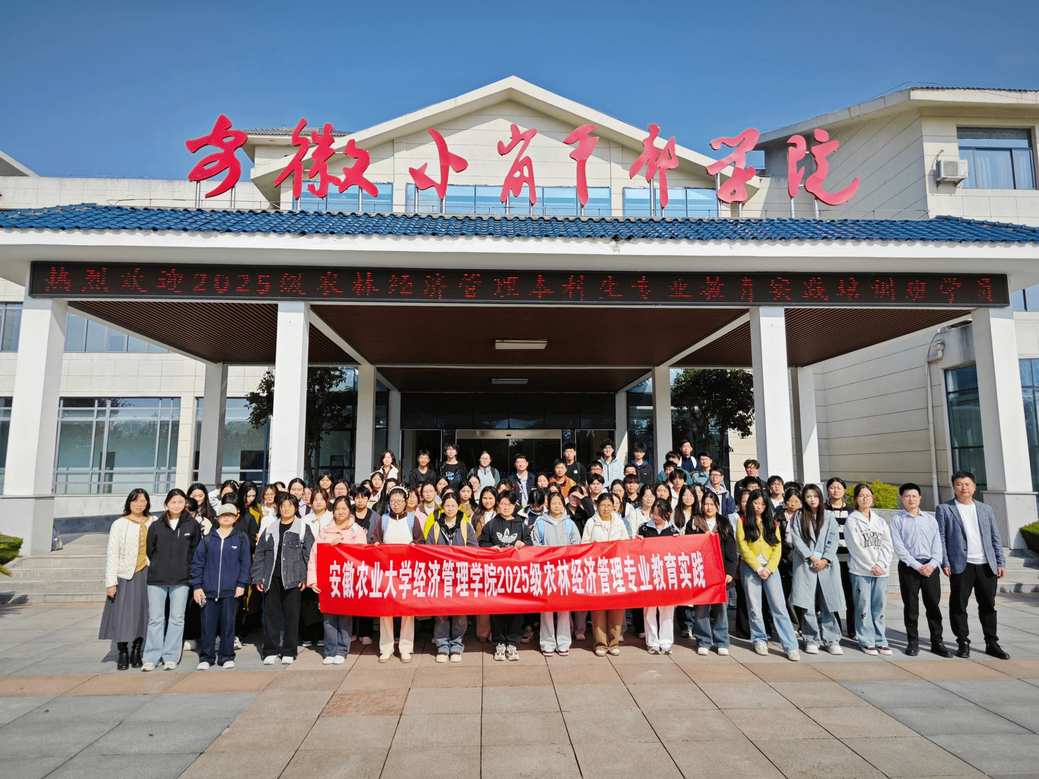 本网讯 为深化农林经济管理专业学生对“三农”问题的理解,感悟改革精神,激发专业学习热情,11月15日,农林经济管理系主任佟大建、系副主任万晶晶、农经专业负责人肖双喜、班主任曾恒源带领2025级农林经济管理专业全体本科生,前往中国农村改革的主要发源地——安徽凤阳小岗村,开展了一场内容丰富、意义深远的专业教育实践活动。