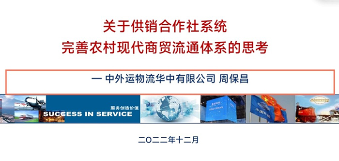 周保昌从“供销合作社的背景意义、国家的政策扶持、完善农村现代商贸流通体系的痛难点,以及如何完善现代商贸流通体系的思考”四个方面介绍了供销合作社系统以及现代商贸流通体系。