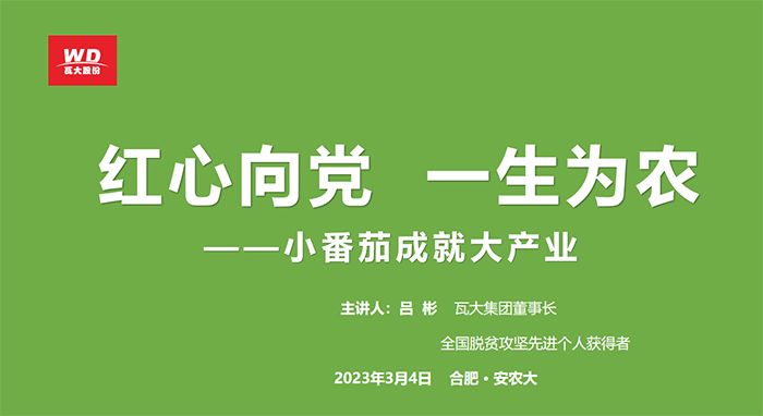 第二期经济管理学院“皖美农品”企业家校园论坛暨市场营销实习报告会于3月4日下午在经管楼103报告厅举行。主题是《红心向党,一生为农——小番茄成就大产业》。瓦大集团董事长、全国脱贫攻坚先进个人吕彬应邀担任本次论坛主讲嘉宾。
