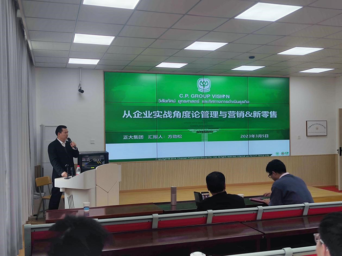 3月5日下午经济管理学院“皖美农品”企业家校园论坛暨市场营销实习报告会第三期在经管楼103报告厅顺利举办。第三期报告会主题是《从企业实战角度论管理与营销&新零售》。正大集团安徽区副总裁、原正大集团易初莲花超市有限公司采购总监、正大食品企业(上海)有限公司资深副总裁方劲松应邀担任本期论坛主讲嘉宾。