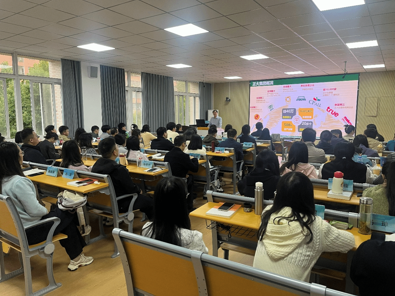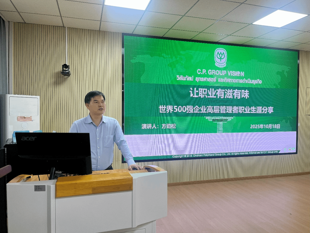 本次讲座在经管学院411教室举行,由经济管理学院副院长田涛主持。方劲松结合正大集团的企业愿景、核心价值观及个人职业成长经历,为学员们提供了兼具理论深度与实践启发的职业发展指导。在如何选择职业赛道环节,方劲松提出四点启示:行业前景与企业平台并重、企业文化与个人价值观契合、地域与资源联动、兴趣与特长叠加。在分析从基层到高层的核心能力跃迁时,方劲松认为:从基层至中层需聚焦业绩贡献与团队培养,具备目标管理、跨部门协作与领导力;从中层至高层需掌握战略解码、资源整合与创新变革能力;企业核心高管角色需具备全局思维与资源驾驭能力。