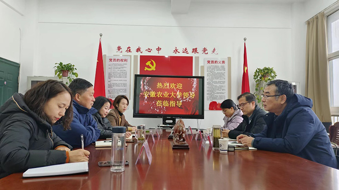 本网讯 1月3日,安徽农业大学经济管理学院党委副书记、纪委书记周涛,副院长田涛及商务管理系教工党支部书记一行三人到安徽水利水电职业技术学院对专本联培电子商务专业学生日常管理服务和教育教学工作进行了调研。安徽水利水电职业技术学院管理工程学院院长汪允文、副院长肖金花、商贸系主任耿翠花、副主任马俊与学院一行座谈研讨。