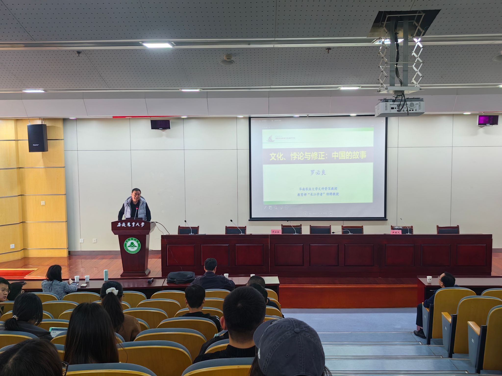 本网讯 4月13日,学院“林宽讲堂”第十三期特别邀请了华南农业大学文科资深教授、教育部“知名专家”特聘教授罗必良作题为《文化、悖论与修正:中国的故事》的学术报告。校长操海群,经管学院党委书记武晓蓓及师生100余人参加了报告会。报告会由院长尹世久主持。