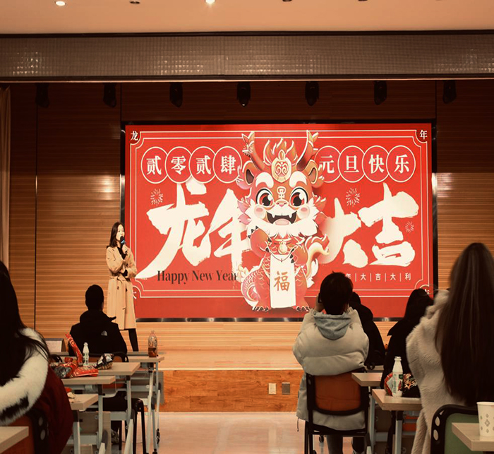 晚会以“国贸电商共鸿运,元旦欢聚迎龙年”为主题,于19点在学校欣苑四楼礼堂盛大开幕,同学与老师们共同见证了这场文化与艺术的盛宴。活动在经济系主任王艳荣教授的热情致辞中拉开帷幕。