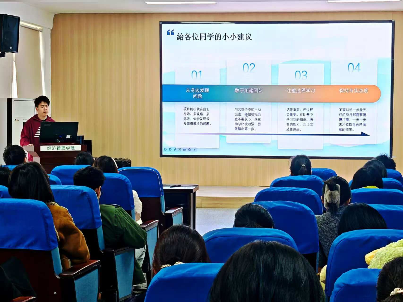 本网讯 为切实帮助学生把握赛事要点,积累参赛经验,12月12日,经济管理学院面向全体学生在经管楼321会议室举办第四届安徽省乡村振兴创新创业大赛经验分享会。