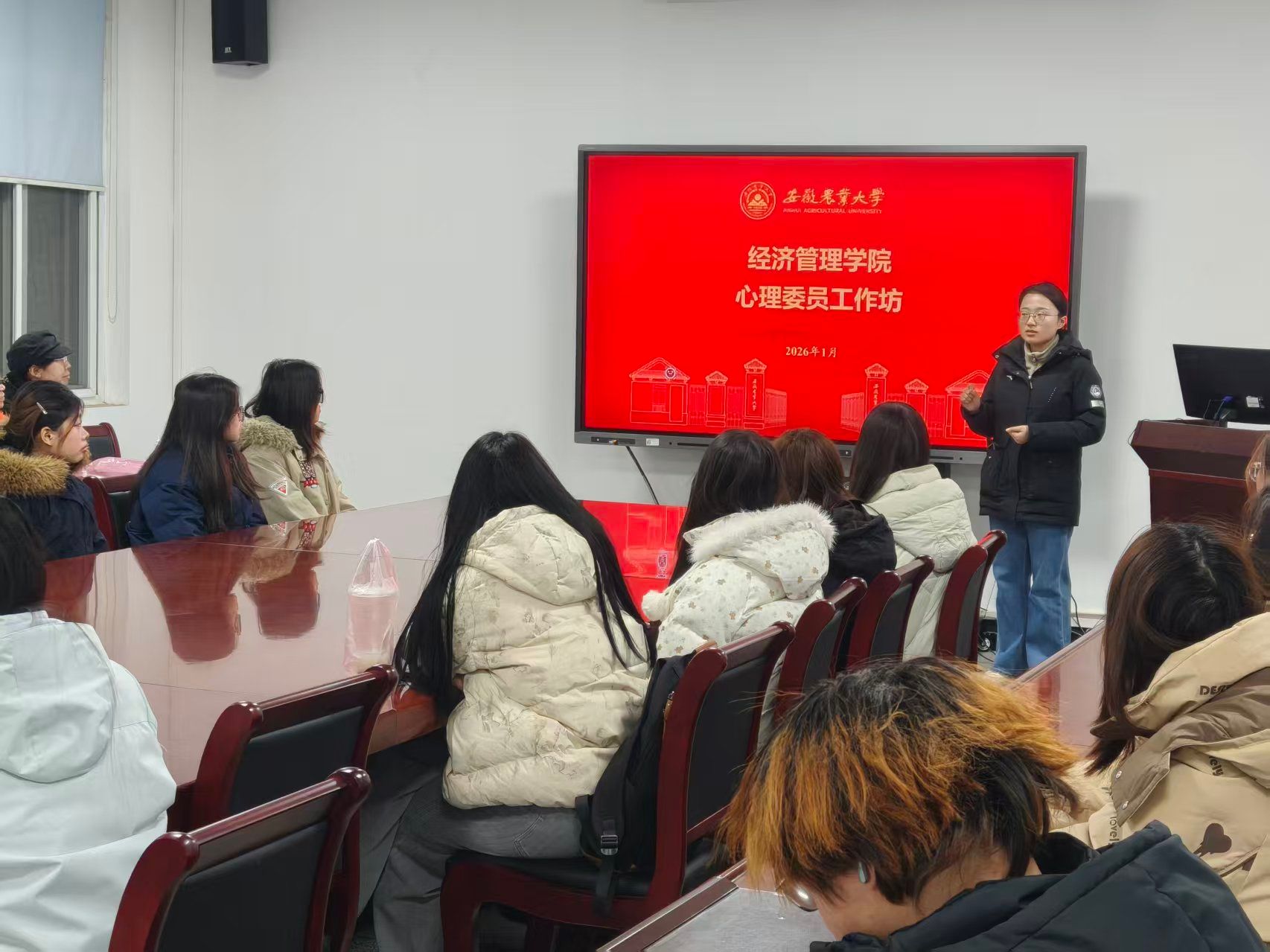 本网讯 为进一步提升心理委员的工作能力,深入领会心理工作的意义和目的,强化师生间的协作联动,更好地辅助老师、服务同学,1月6日晚7点,经济管理学院在经管楼304会议室召开“启明心窗,经彩人生”心理委员培训会,本次会议由学院心理工作负责老师主讲,全院心理委员参与。