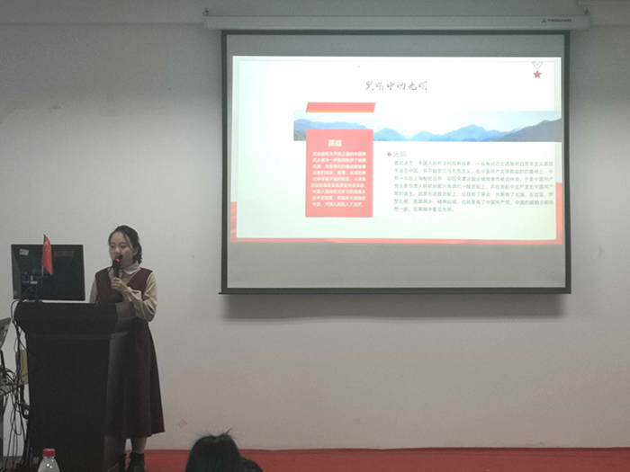 金融3班团支书马乐璇同学通过“中国共产党的运动史”、“学习党的二十大精神”、“奋斗新征程,筑梦新时代”三个方面总结了这次活动,鼓励同学们做诗人北岛笔下碎片化却绽放光芒的太阳,在新时代踏上新征程,在时代的星云中奔赴前方,为党的第二个百年奋斗目标而不懈努力。