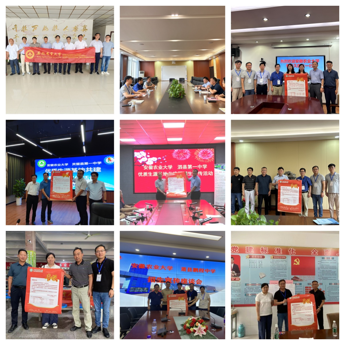 本网讯 为加强我校与生源高中的联系,提升2024年本科招生宣传力度,吸引优质生源报考我校,进一步提高生源质量。在招生“黄金周”6月25日至29日,学院领导班子带队赴宿州片区宿城第一中学、宿州第二中学、萧县鹏程中学、萧县实验高级中学、萧县中学、泗县第一中学、灵璧县第一中学等7所优质生源高中,集中开展优质生源基地回访和现场招生宣传活动。