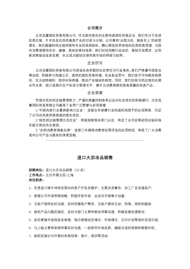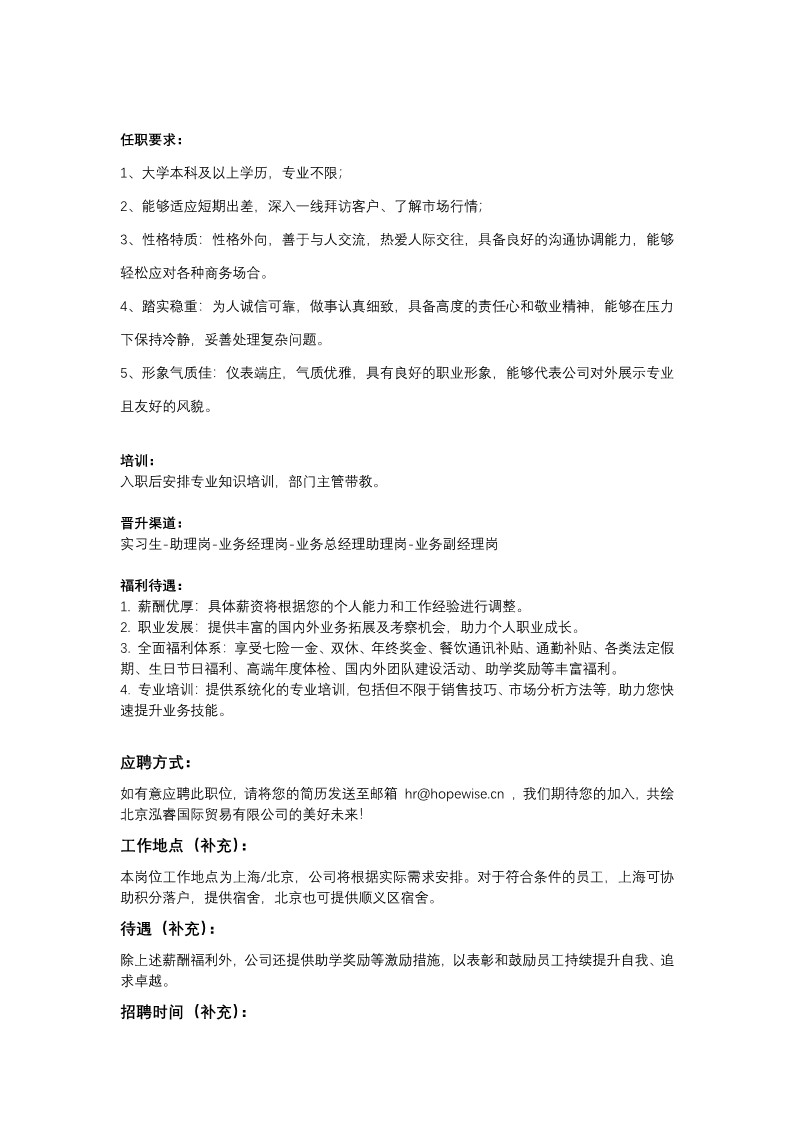 【招聘简章】北京泓睿国际贸易有限公司