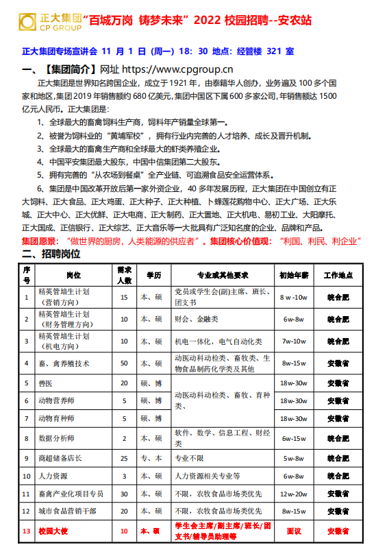【宣讲会11月1日 晚6:30 经管楼321】正大集团