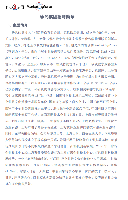 【招聘简章】珍岛集团