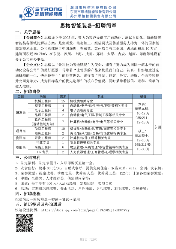 【招聘简章】深圳市思榕科技有限公司