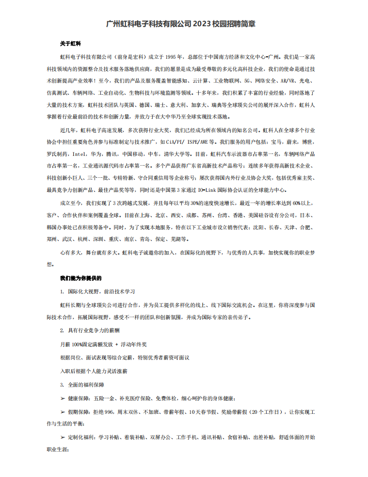 【招聘简章】广州虹科电子科技有限公司
