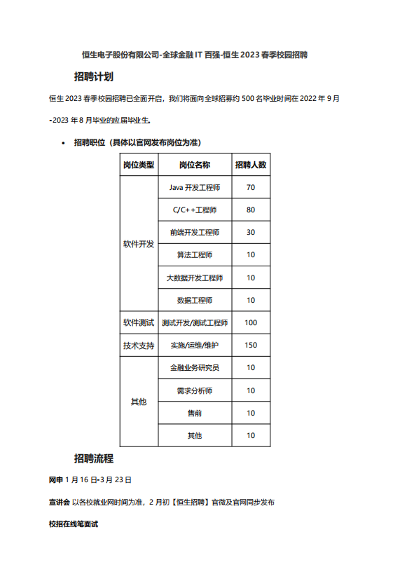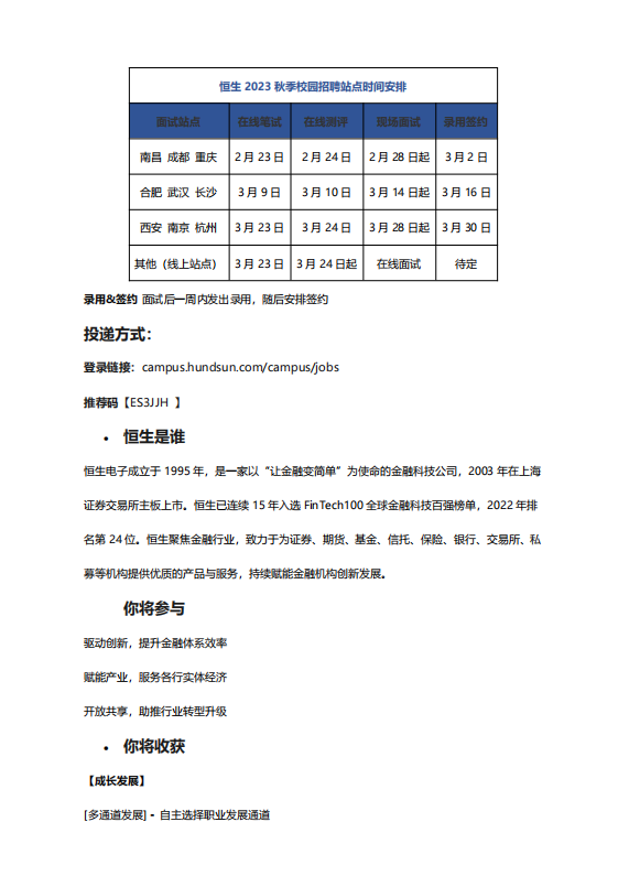 【招聘简章】恒生电子股份有限公司