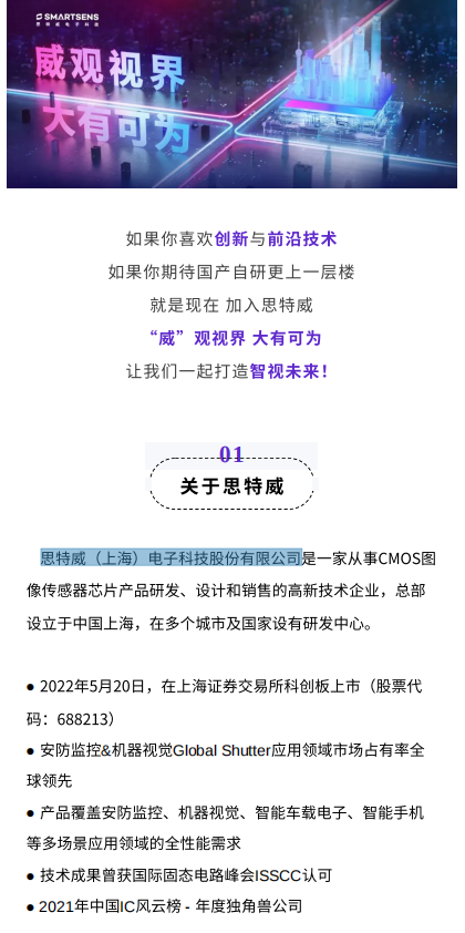【招聘简章】思特威(上海)电⼦科技股份有限公司