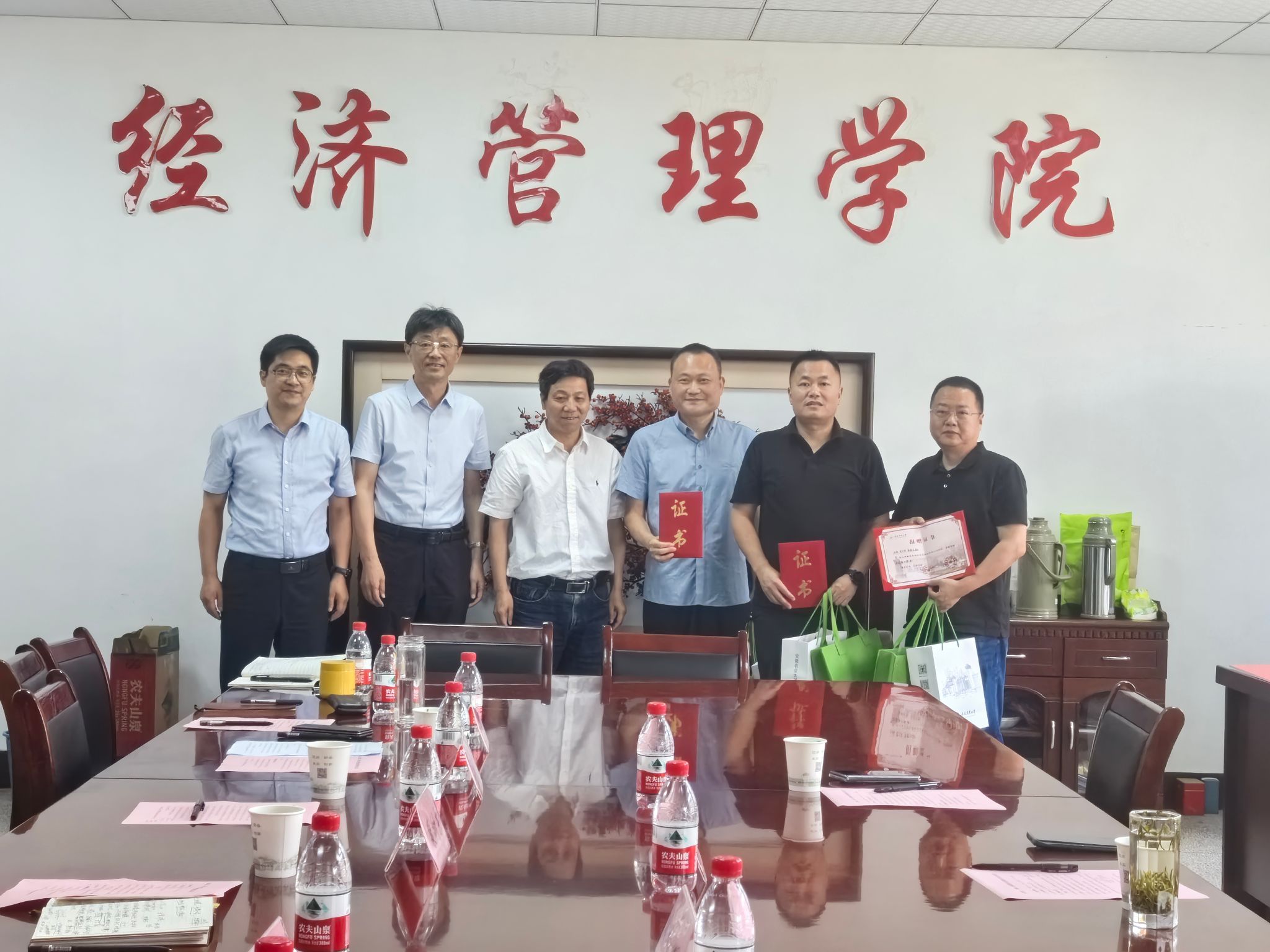 捐赠仪式上,经济管理学院院长尹世久与校友代表宋兴龙签订了捐赠协议书。裴树东、韩军、刘海涛代表学校向三位校友颁发捐赠证书。仪式后,大家进行了亲切交流,气氛温馨融洽。
