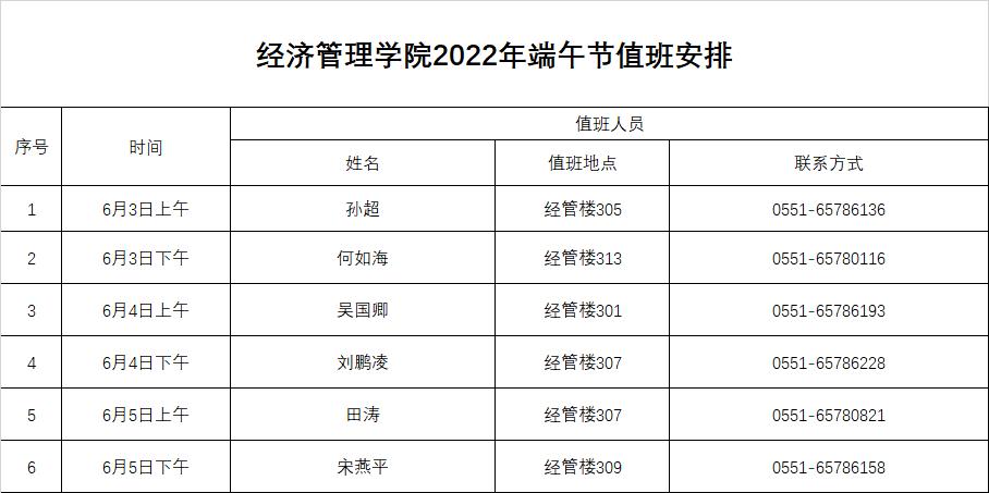 经济管理学院2022年端午节值班安排