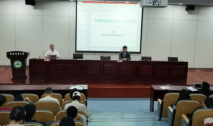 本网讯 10月20日上午,经济管理学院“林宽讲堂”第八期学术报告会在校图书馆第二报告厅举行。国家林业和草原局发展研究院中心副主任、二级研究员、博士生导师刘璨应邀以“深化集体林权制度的改革思考”为主题做学术报告。报告会由经济管理学院院长尹世久教授主持,学院师生100余人参加了报告会。
