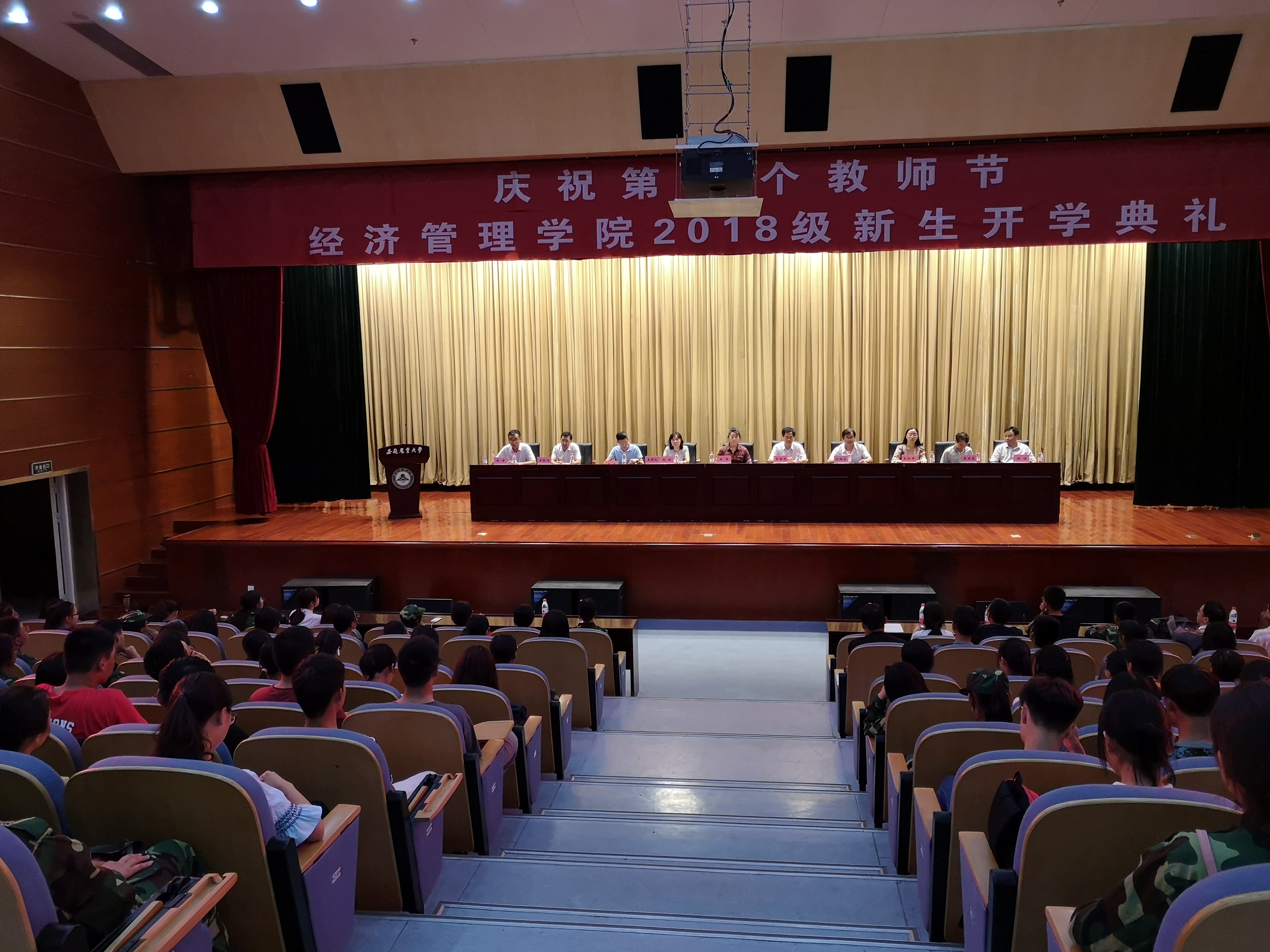 本网讯 9月10日晚,经济管理学院在图书馆第一报告厅隆重举行了2018级新生开学典礼。学院党政领导、各系主任、新生班主任以及2018级全体新生参加典礼。开学典礼由学院党委副书记倪健主持。