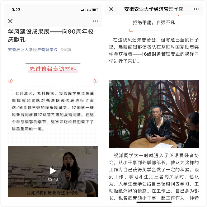 学院重点挖掘学风建设中的优秀典型,采访了获国家奖学金、国家励志奖学金、品学兼优毕业生、先进班级荣誉称号的学生代表,并采取线上推送、线下展示相结合的方式开展学风建设成果展宣传,在全院营造勤奋学习的浓厚氛围,使广大学生学有标尺、赶有目标,也向老师、校友和社会各界展示了安农学子积极向上的精神风貌。