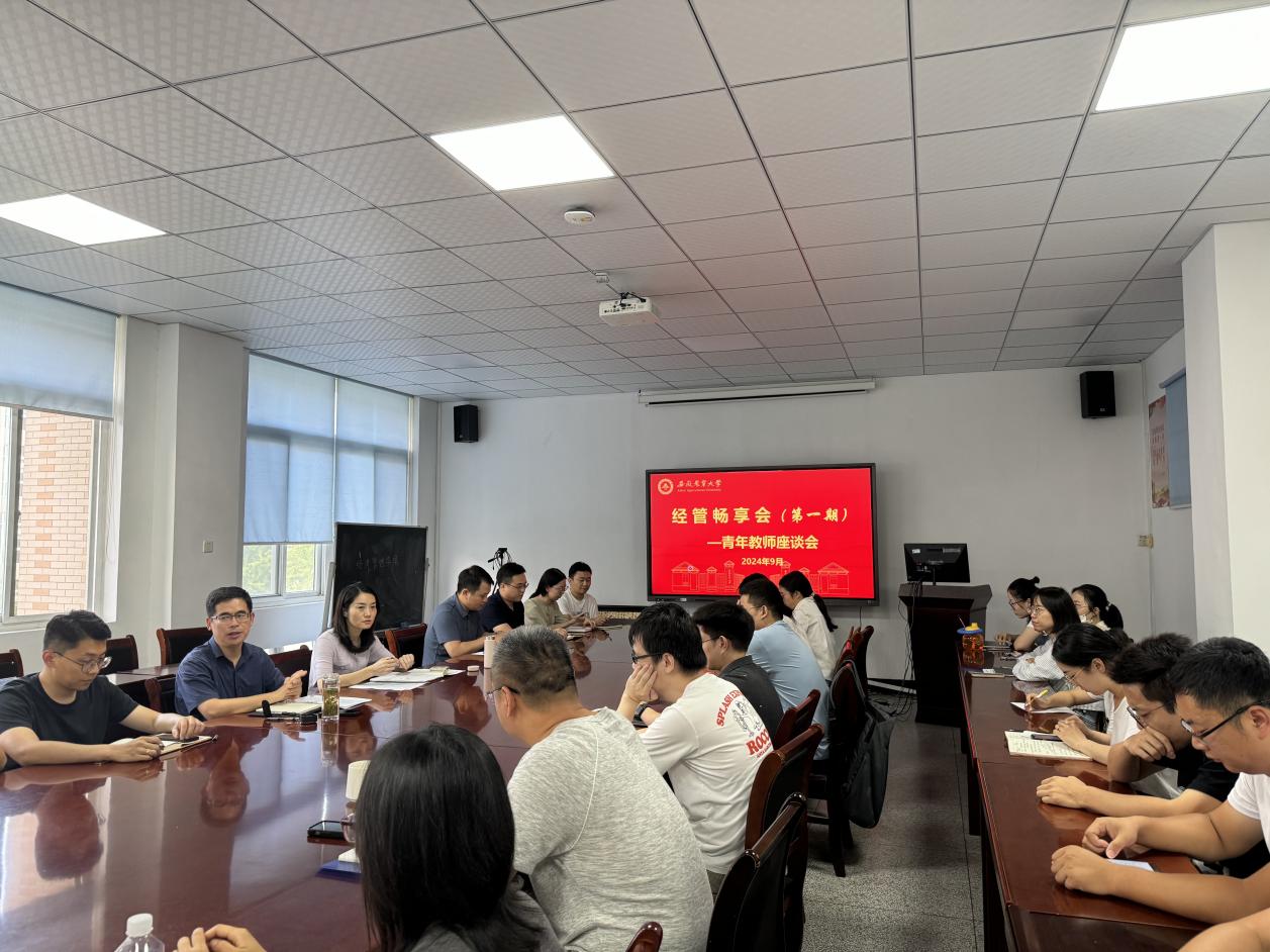 本网讯 为畅通青年教师交流机制、凝聚青年教师力量,促进青年教师成长。9月20日,经济管理学院召开经管畅享会(第一期)——青年教师座谈会,学院党委书记武晓蓓、院长尹世久及全体青年教师参加会议。