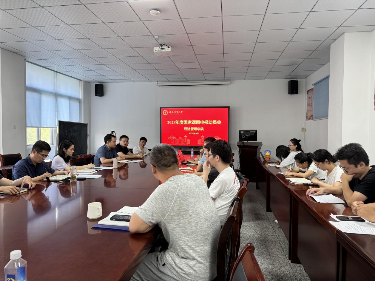 本网讯 为尽早尽快推进新一年度国家课题申报工作,推动学院科学研究水平提升,实现标志性项目进一步突破,推动学科建设与发展,9月20日,经济管理学院2025年国家课题申报动员会在经管楼304会议室举行。院党委书记武晓蓓、院长尹世久、学院全体青年老师和拟申报新一年度国家课题的教职工参加会议。