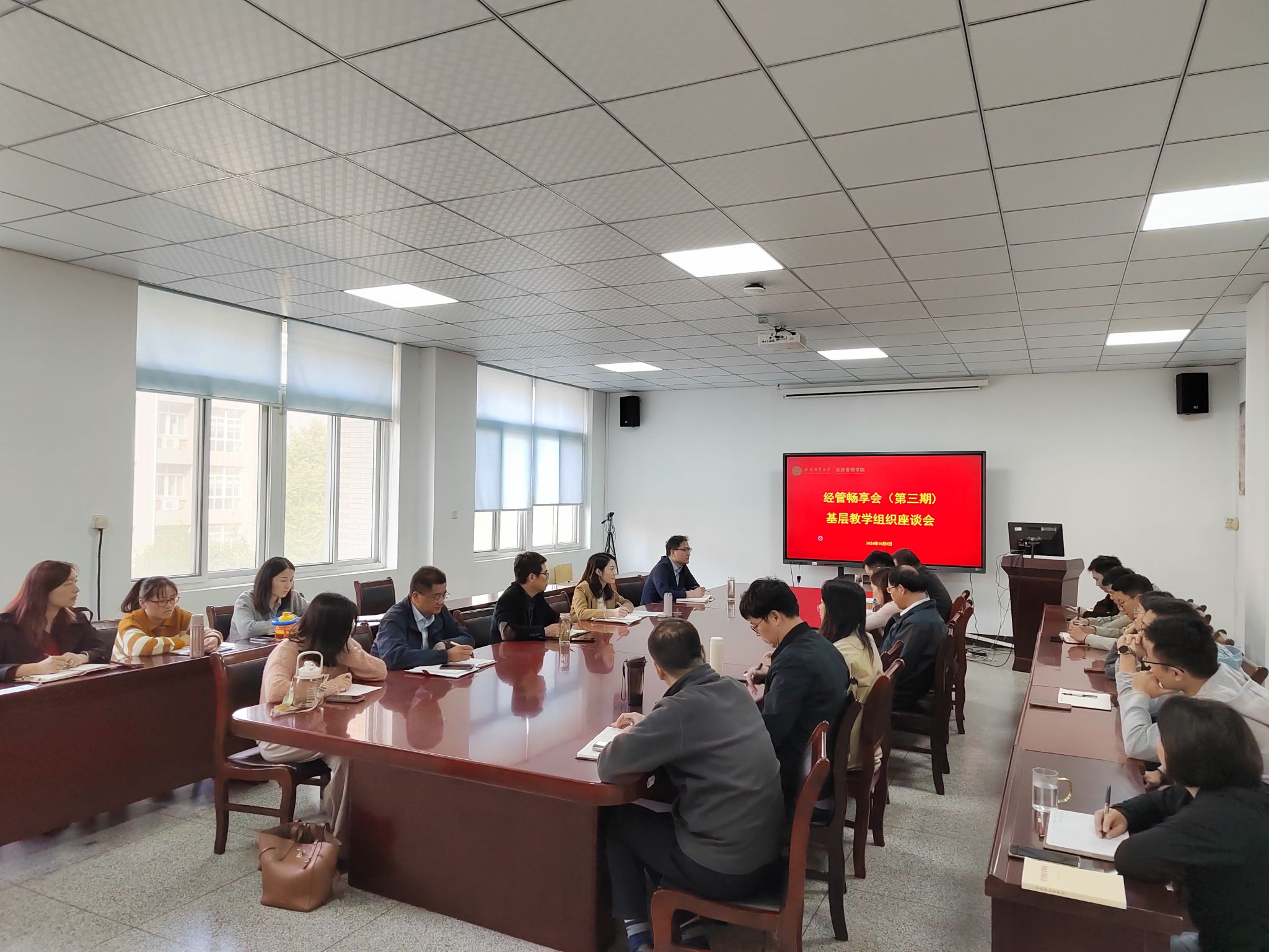 本网讯 10月8日下午,经管畅享会(第三期)——基层教学组织座谈会在经管楼304会议室召开。学院班子成员、各系主任、副主任、秘书等参加会议。会议由院党委书记武晓蓓主持。