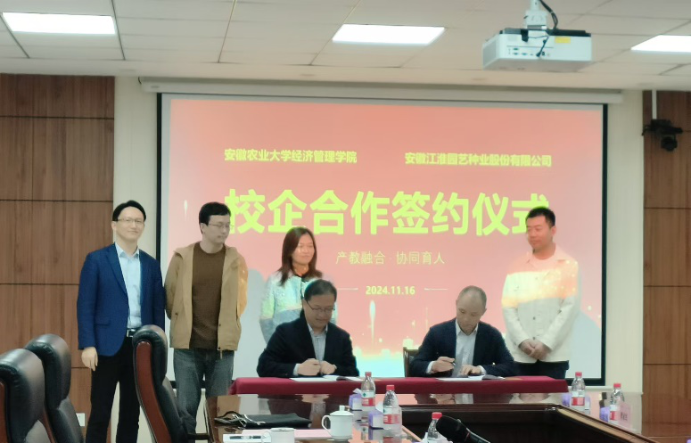 本网讯 为深化产教融合、增强校企合作,提升专业教育教学水平,优化人才培养模式,11月16日上午,经济管理学院国际经济与贸易专业与安徽江淮园艺种业股份有限公司校企合作实践教育基地签约仪式在江淮园艺吴山示范基地举行。学院党委副书记、纪委书记周涛、经济系主任王艳荣与江淮园艺国贸部经理任翔进行了洽谈,国贸专业教师代表以及江淮园艺代表参加了签约仪式。