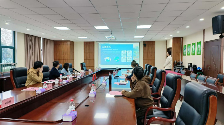 江淮园艺国贸部经理任翔首先表达了对此次校企合作的期待与信心,他详细介绍了公司发展的基本情况以及国际贸易业务的海外市场拓展情况,表示校企合作可以促进教育和产业的深度融合,为学生实践能力的提升提供更多机会,帮助学生更好地了解企业的需求和要求,同时通过加强双方在社会服务、科学研究等方面的合作,共同推动行业的创新与发展。江淮园艺人力资源负责人赵云辉就公司发展历程、业务情况以及人才培养做了全方位介绍,他指出人才是企业的重要资源,江淮园艺具有完善的人才培养机制和激励机制,能够帮助员工快速的成长和发展,他十分期待通过校企合作为企业输送更多优秀人才。
