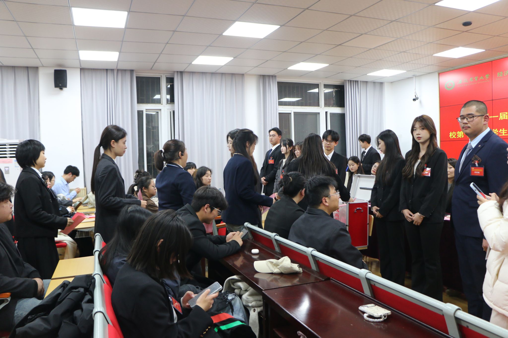 随后,大会选举产生安徽农业大学经济管理学院学生会、研究生会主席团成员及出席校第十九次学生代表大会、第五次研究生代表大会代表名单。经过无记名投票,刘一凡、张莉洁、席羽彤当选为新一届学生会主席团成员,王幸生、吴菲菲、王曹哲当选新一届研究生会主席团成员。