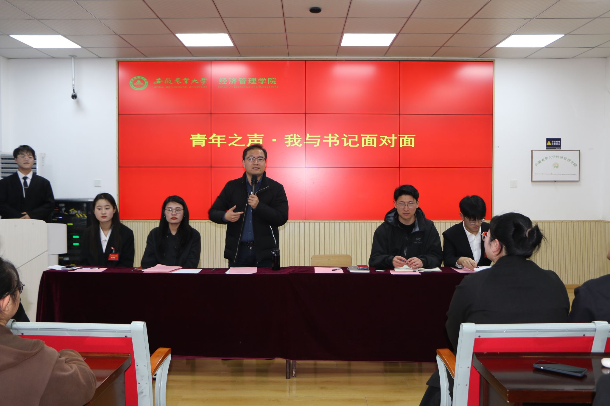 在“青年之声·我与书记面对面”环节中,周涛悉心听取学生代表的心声,认真回应同学们的诉求,现场还邀请了退役复学、推免保研、校外实习三位学生代表分享了自己关于学习、生活的感悟和思考,搭建起了学院党委与青年学子间心灵交互、思想共鸣的桥梁。