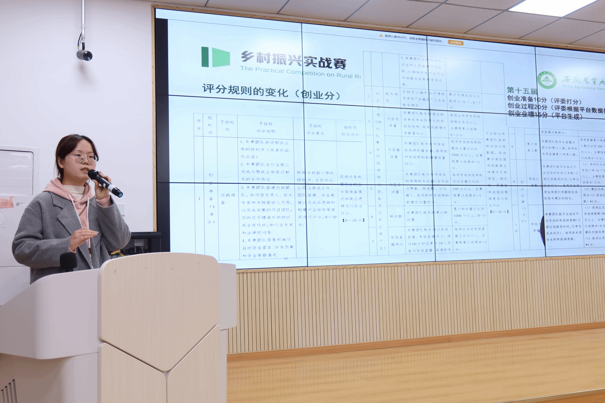 本次分享会邀请了三位在电子商务“创新、创意及创业”挑战赛国赛中获奖的学生代表向同学们做经验分享。会上,2021级土地资源管理专业王寒薇结合评分细则和自身经验详细介绍了三创赛参赛的基本流程和时间节点,提醒同学们要提前完善策划书与ppt。并说明优质参赛作品应当紧扣创新、创意、创业三大维度精心打磨、持续优化。