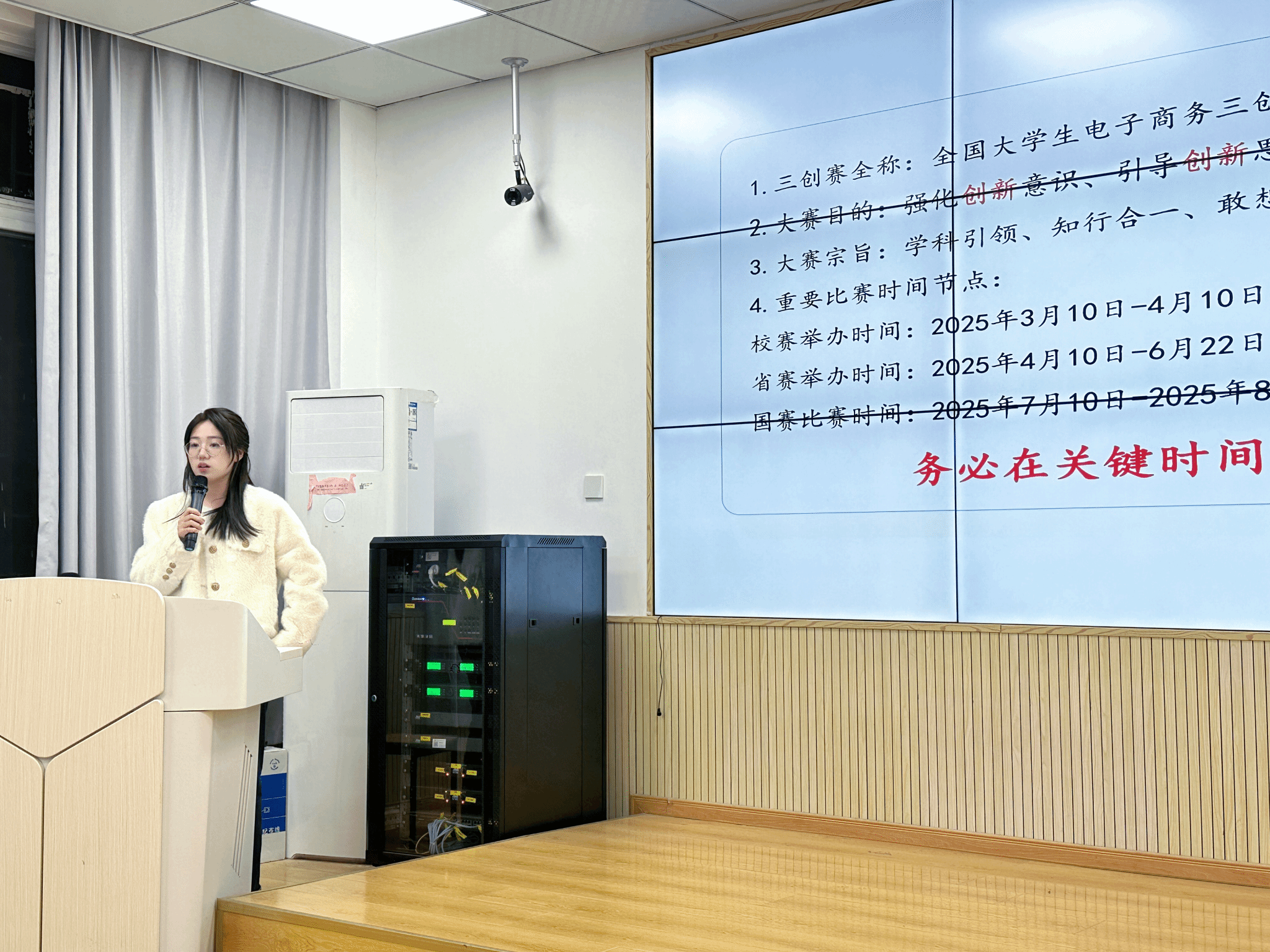 本网讯 为增进学院学生对电子商务“创新、创意及创业”挑战赛的了解,培养学院学生参与学科竞赛的兴趣和积极性,11月27日,经济管理学院学生会学践部在经管楼103教室举办“‘经’彩时光,‘竞’帆起航”——电子商务“三创赛”分享会,吸引了2023、2024级本科生130余人参加。