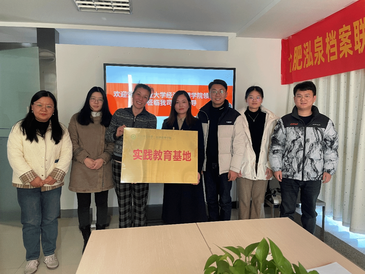 本网讯 为强化校企合作,提升数字经济专业的教育质量,1月10日上午,经济管理学院数字经济专业与合肥泓泉档案信息科技有限公司校企合作实践教育基地签约挂牌仪式顺利举行。经济系主任王艳荣、副主任方航与合肥泓泉档案信息科技有限公司总经理姜心泓进行了洽谈,经济系教师代表参加了签约挂牌仪式。