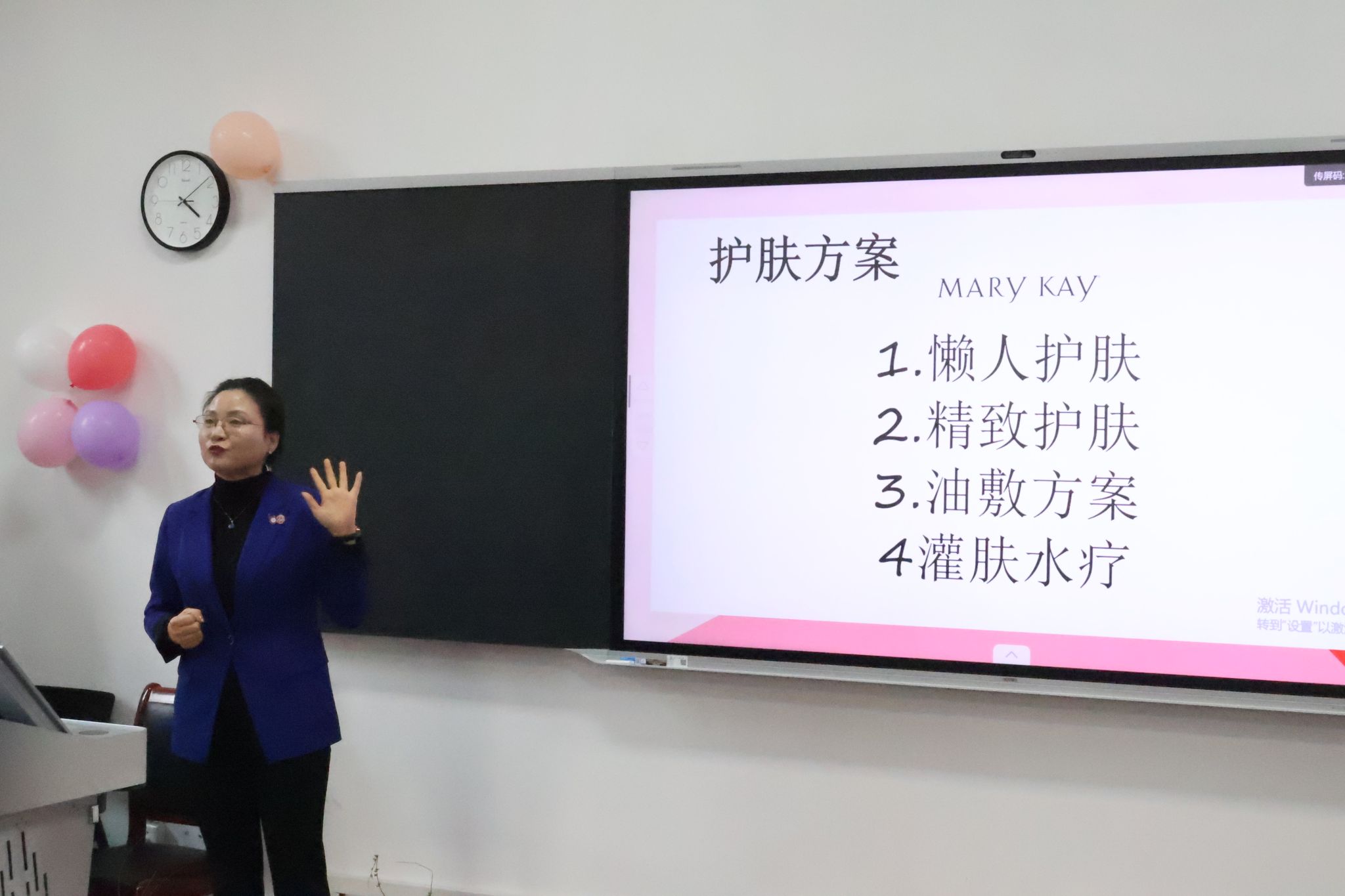 美妆传技艺 自信展风采 活动特邀专业美妆师现场示范护肤、美妆与康养教学,并互动问答。化妆师郑先俊现场演示“三分钟通勤妆”技巧,从底妆晕染到口红选色,结合职场场景进行针对性教学。“原来高光应该打在颧骨上方”“眉形要根据脸型调整”,老师们现场学习并体验。