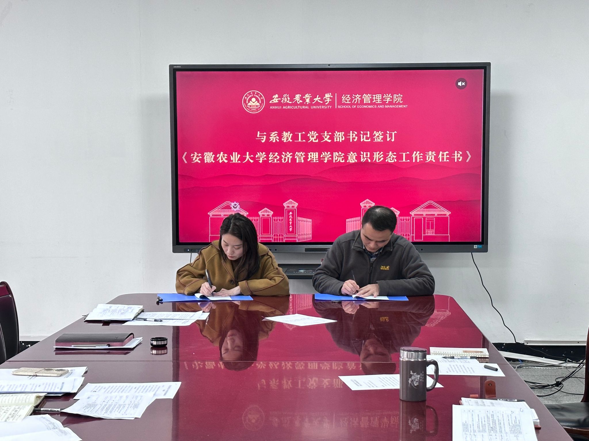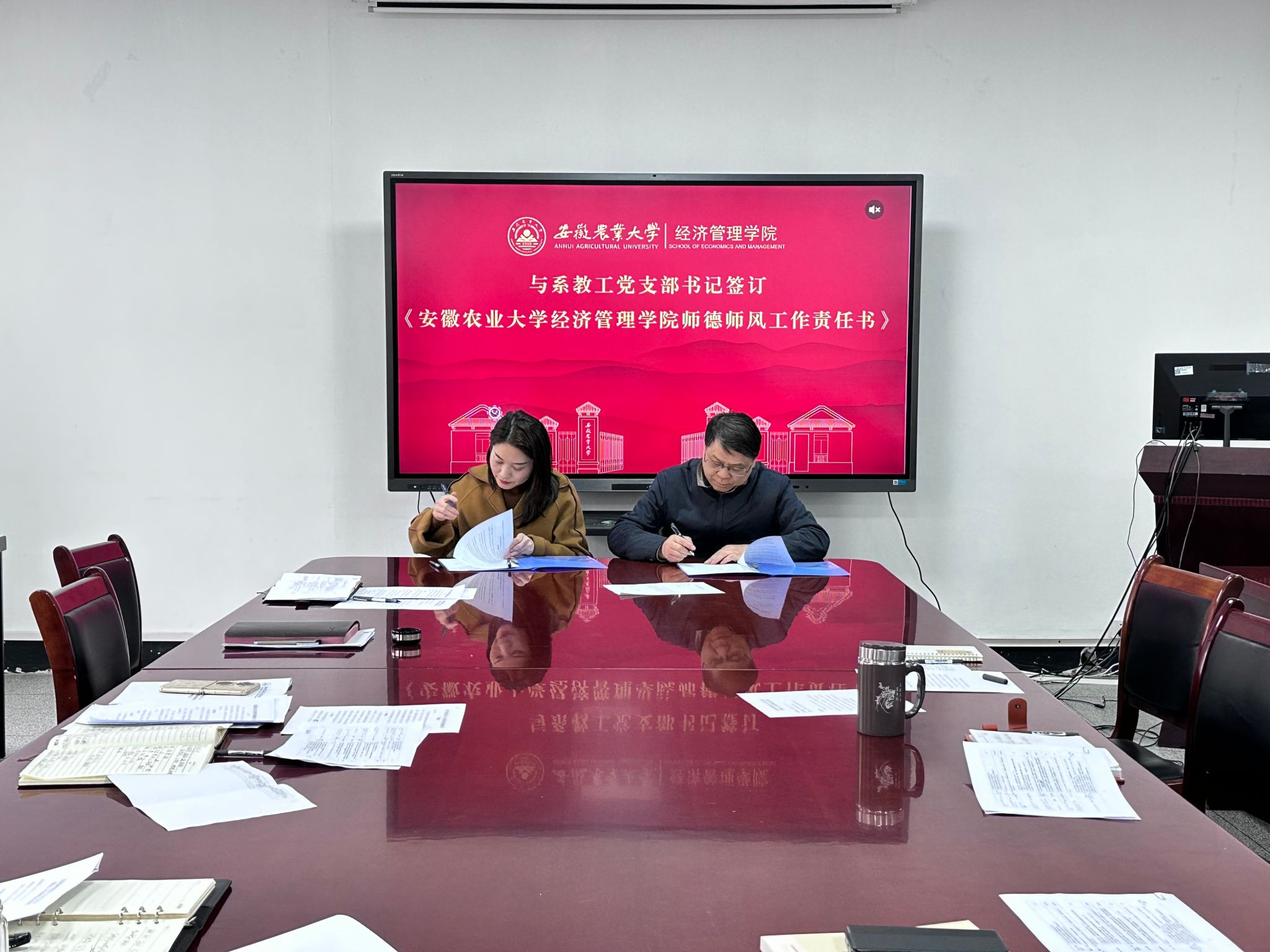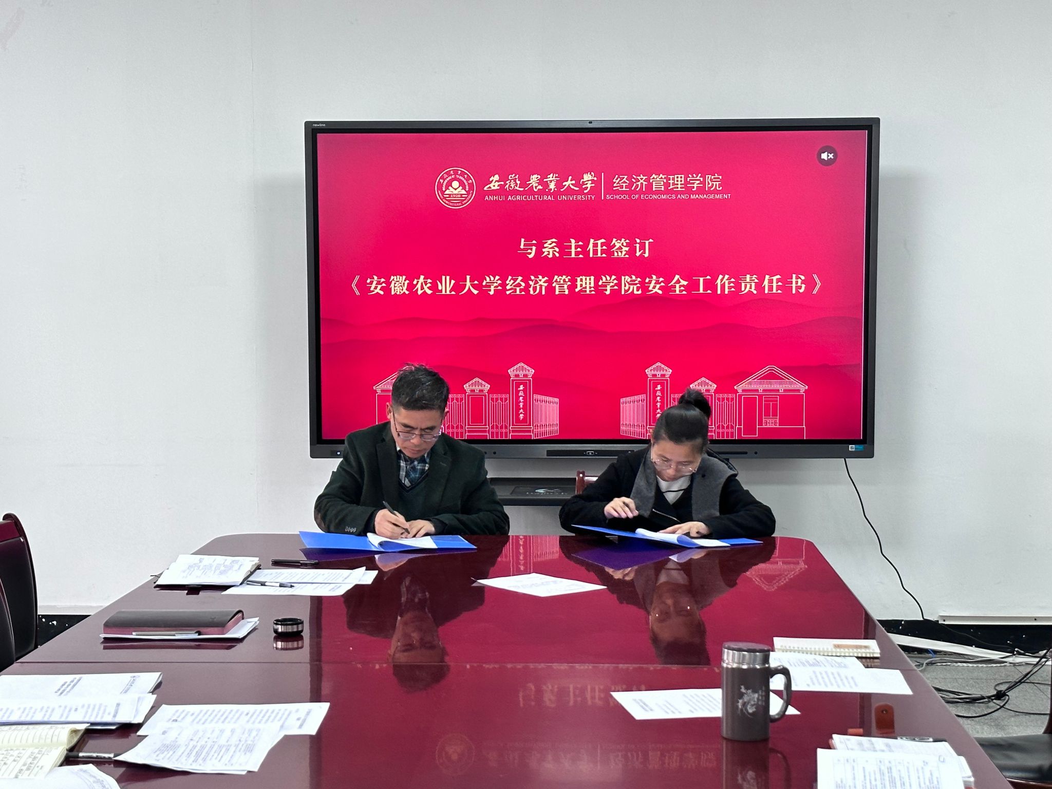 会上,武晓蓓、尹世久还代表学院与各系教工党支部书记、系主任分别签订《经济管理学院师德师风工作责任书》《经济管理学院意识形态工作责任书》《经济管理学院安全工作责任书》。