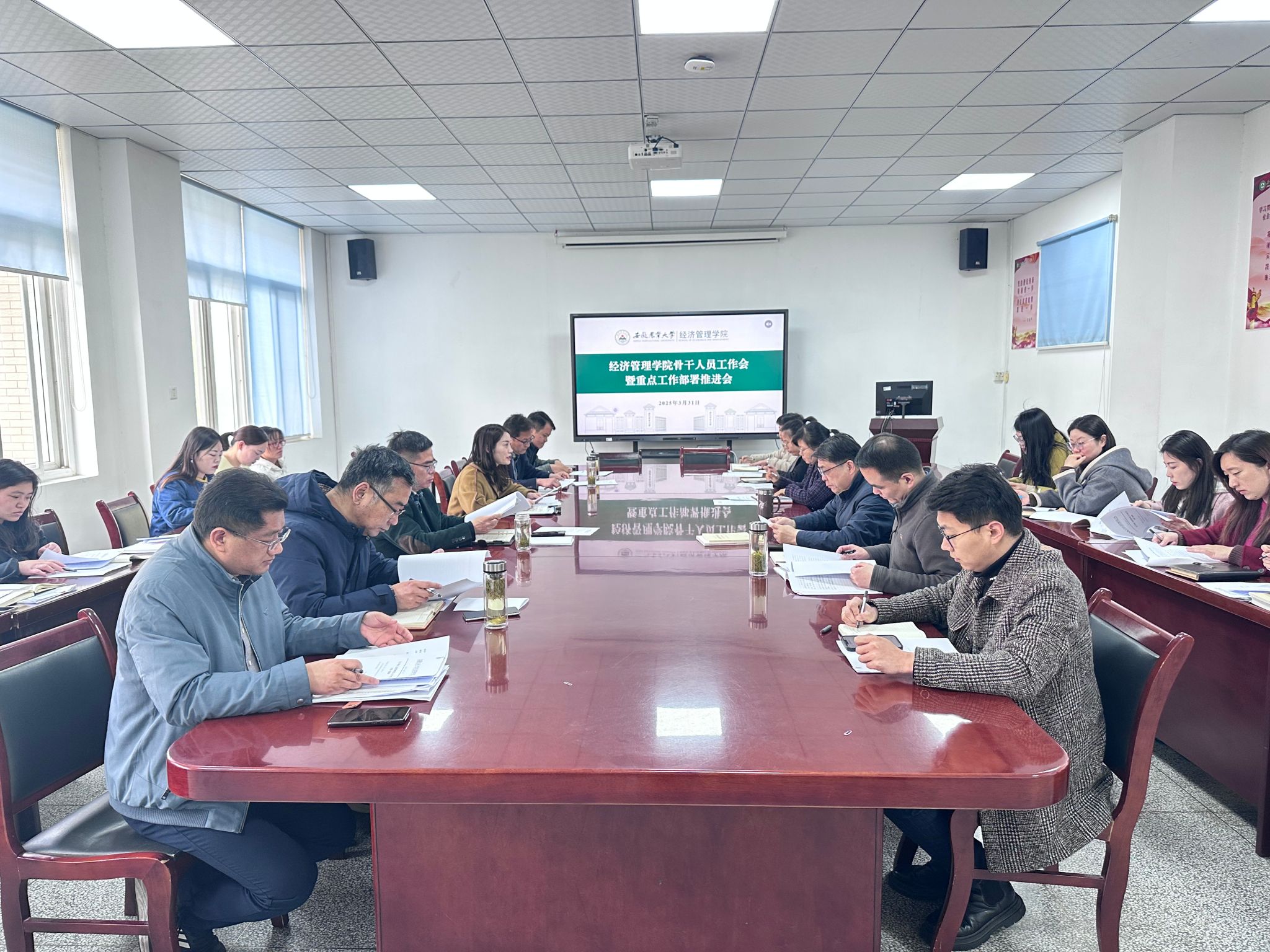 会上,学院领导班子对《经济管理学院2025年重点工作一览表》等30项重点工作进行逐项解读,并对各项工作的具体措施和推进机制进行明确,与会人员就各项重点工作进行讨论交流。最后,学院领导围绕分管工作进行强调,要求骨干人员要提高政治站位,强化责任担当,围绕2025年各项重点工作压紧压实责任、稳步推进,不断出实招、下实功、见实效。