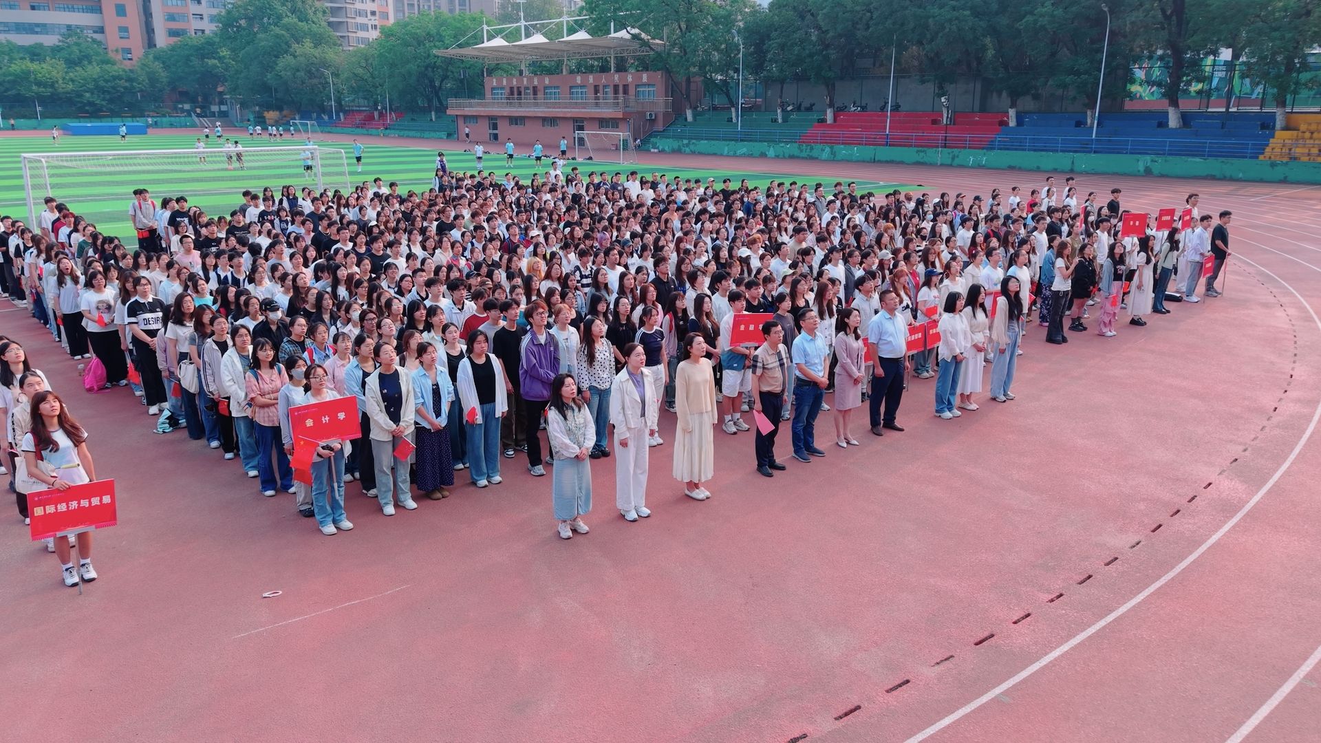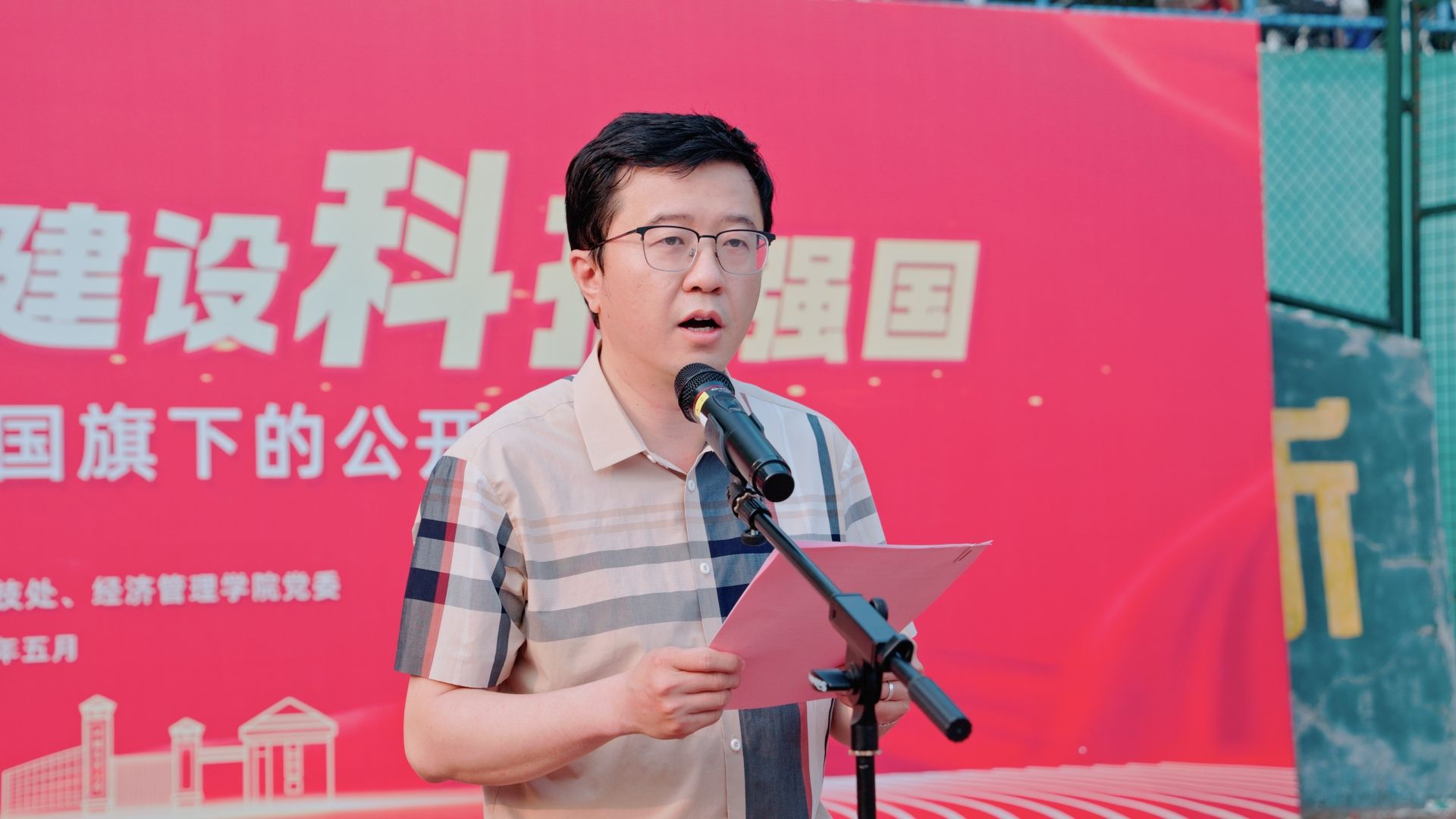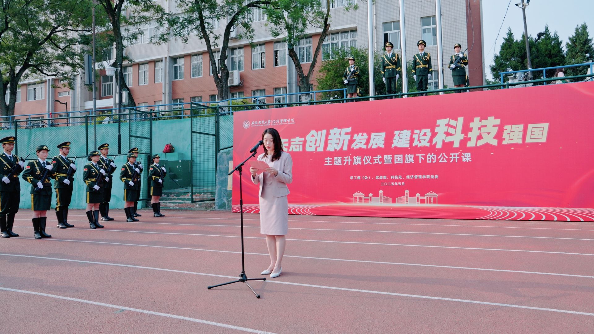 本网讯 为学习贯彻习近平总书记关于科技创新的重要论述和考察安徽重要讲话精神,5月26日早上,在第二十五个全国科技活动周、第九个全国科技工作者日来临之际,经济管理学院在校第一运动场举行“矢志创新发展,建设科技强国”主题升旗仪式暨国旗下的公开课。校学工部(处)、武装部、科技处负责人,学院党政领导、全体专职辅导员,2024级全体学生参加了仪式。仪式由院党委副书记、纪委书记周涛主持。