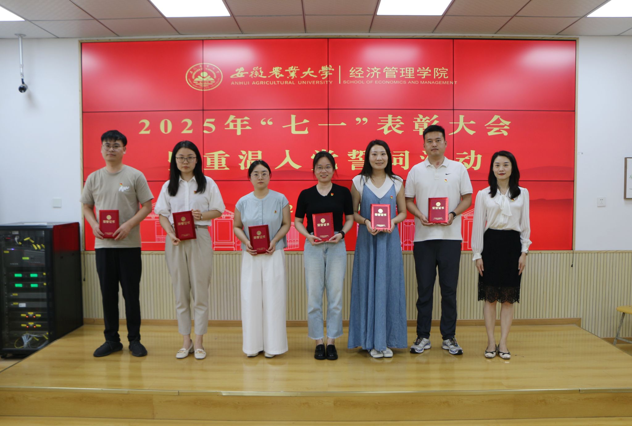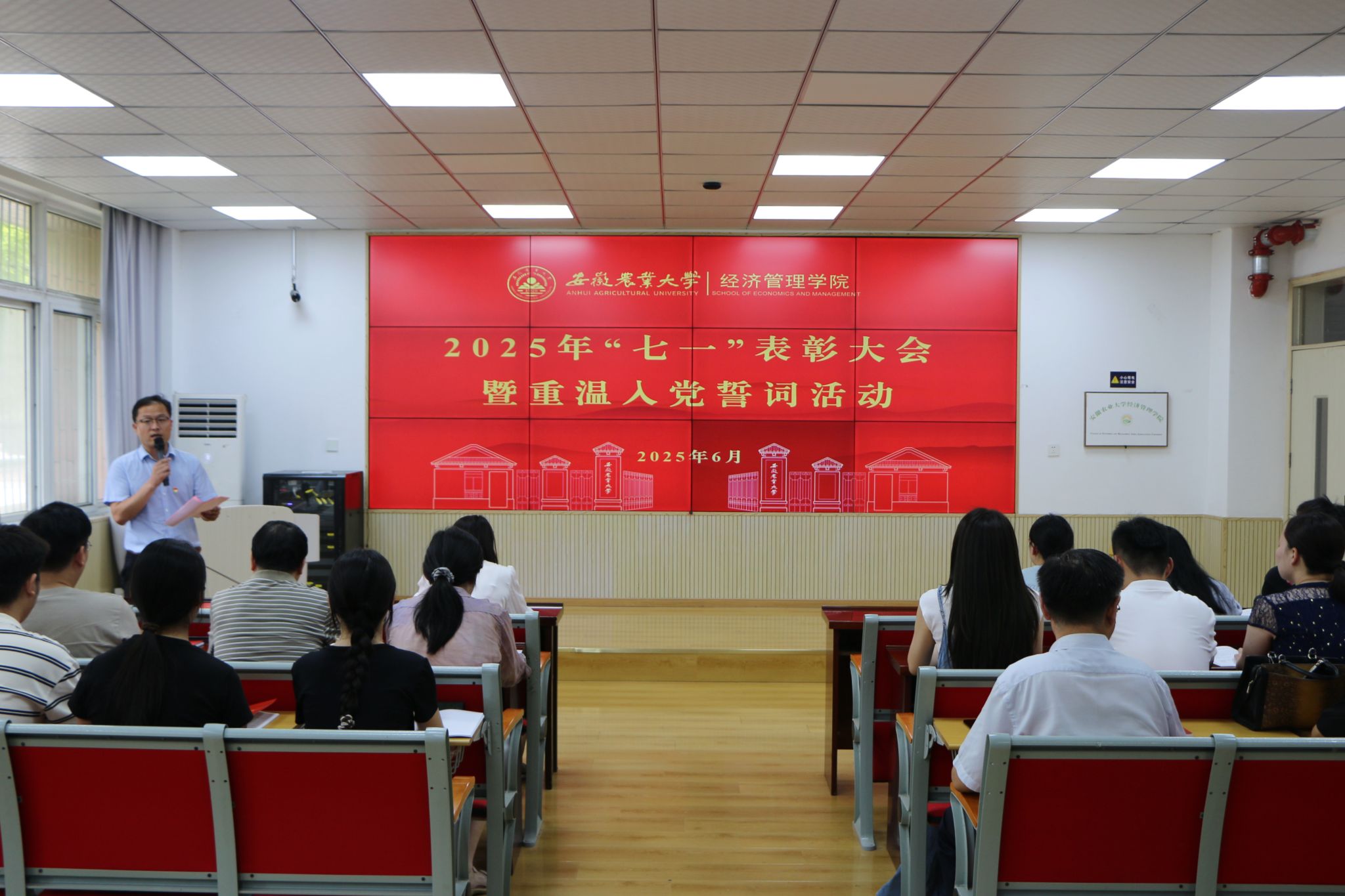 大会在庄严的国歌声中拉开序幕。与会领导为获得学院2025年度“优秀共产党员”“优秀党务工作者”“先进党支部”荣誉称号的师生党员和党支部颁发证书。全体党员庄严宣誓,重温入党誓词,共忆入党初心,再一次接受精神和心灵的洗礼。