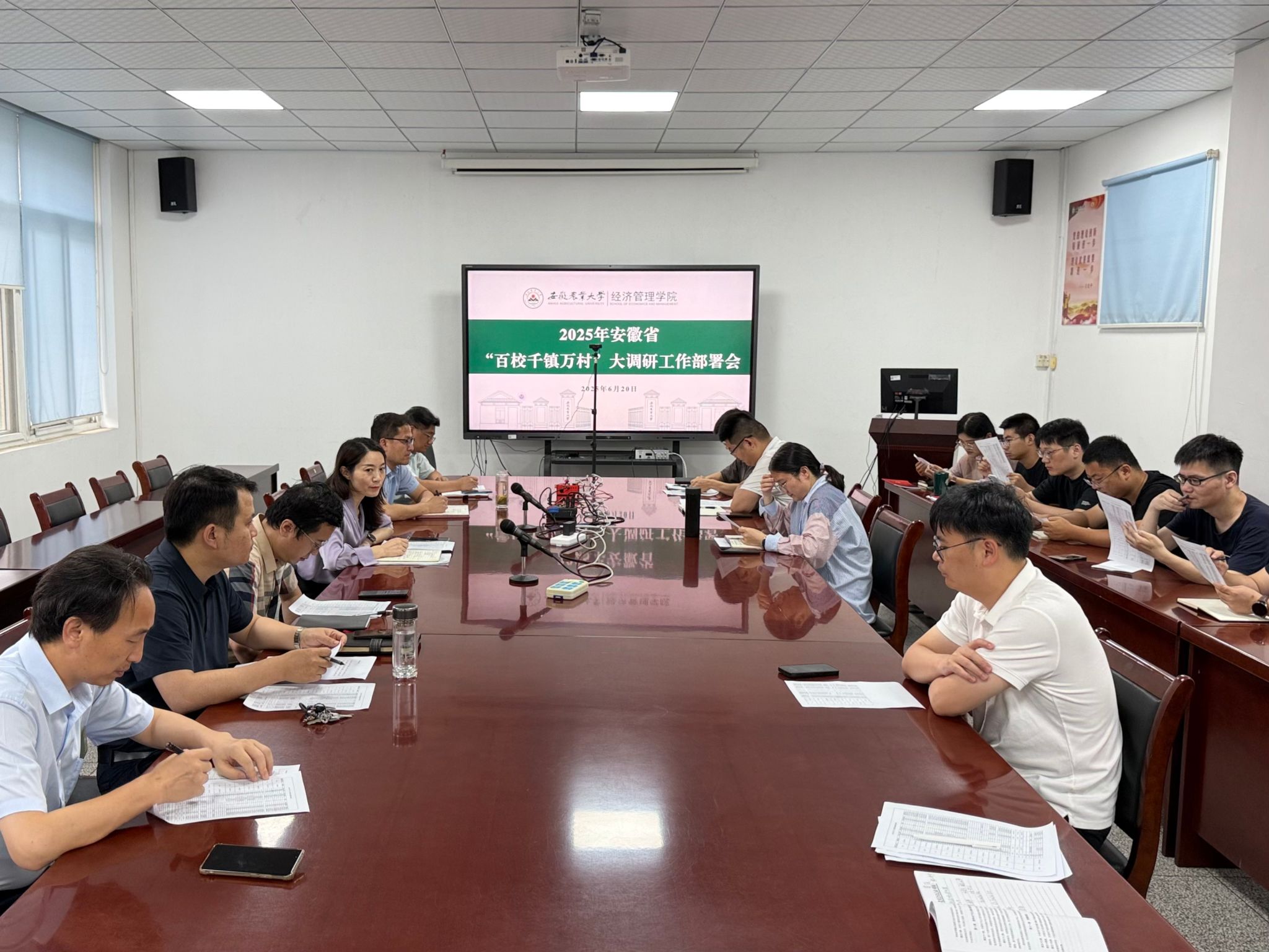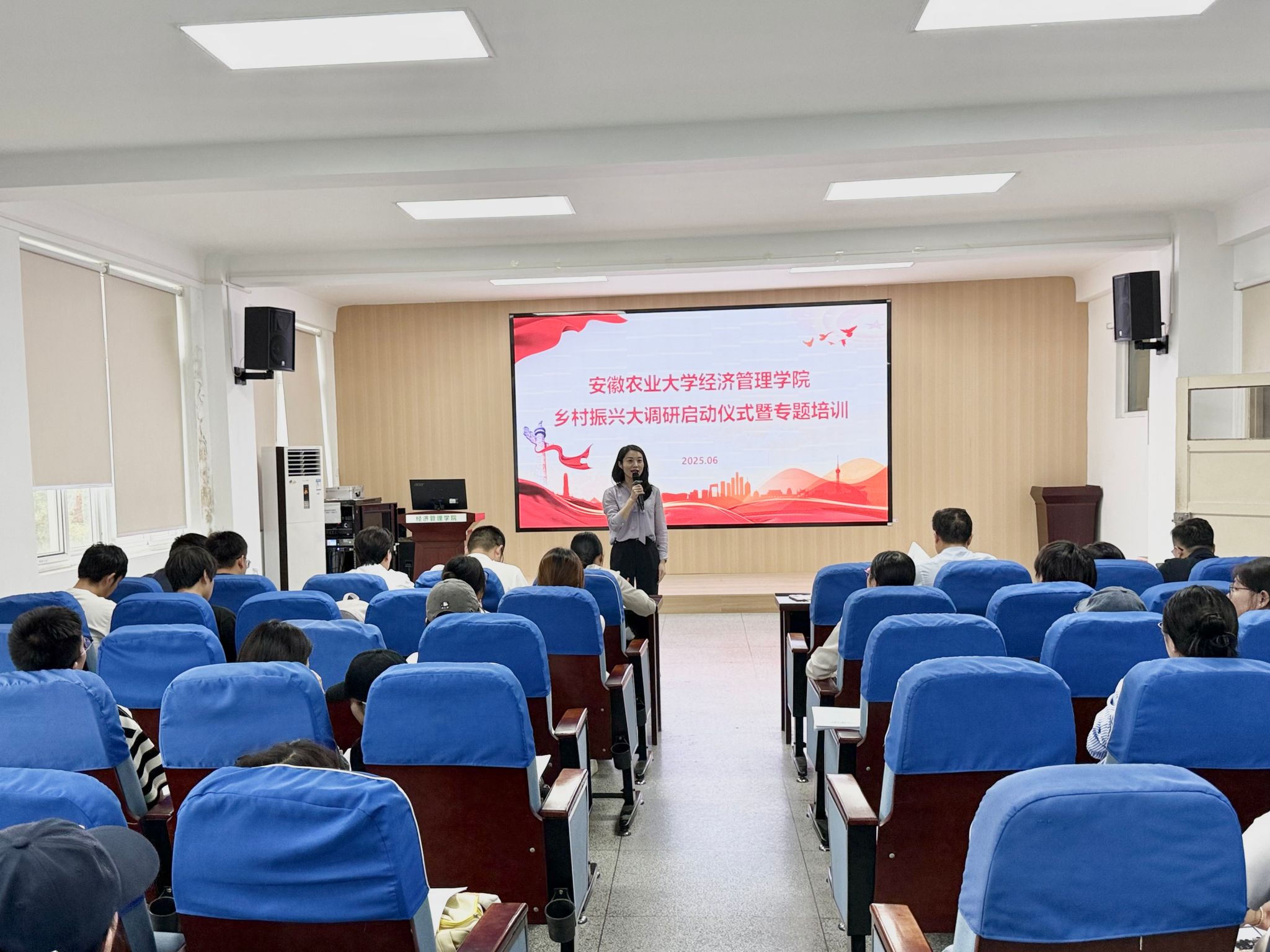 本网讯 为助力乡村振兴战略实施,引导青年学子在实践中增长才干,6月24日,安徽农业大学经济管理学院在经管楼321会议室召开了2025年乡村振兴大调研启动仪式暨培训会。学院党委书记武晓蓓,党委副书记、纪委书记周涛出席了活动,团队指导老师及全体调研队员参加活动。