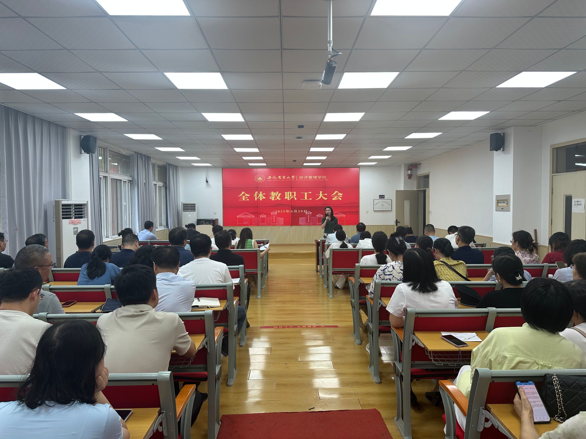 本网讯 8月29日下午,经济管理学院在经管楼103会议室召开新学期全体教职工大会,学院领导班子及全体教职工参加会议,会议由学院党委副书记、纪委书记周涛主持。