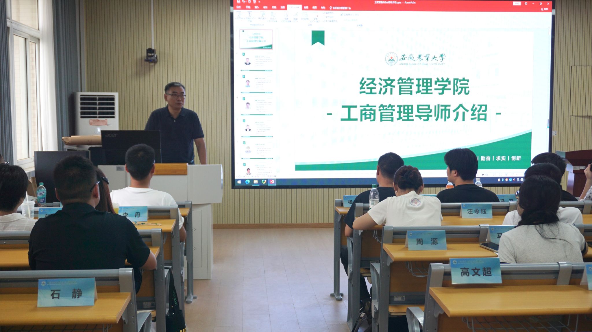 会上,田涛首先致欢迎辞。他代表学院对MBA新生的到来表示热烈祝贺和诚挚欢迎,并介绍了学院深厚的历史底蕴、卓越的师资力量以及MBA项目的培养理念与计划。他指出MBA学习不仅是知识的深化,更是人脉的拓展、视野的开阔和能力的全面提升。他鼓励同学们珍惜重返校园的宝贵时光,在未来两年的学习生涯中,积极参与课堂讨论、案例竞赛和各类课外活动,主动与来自不同行业背景的同学交流互鉴,在安农收获更多的知识与本领,自信迈向更广阔的天地。为便于同学尽快开展导师双选活动,田涛还对学院所配备的工商管理导师进行了详细介绍。