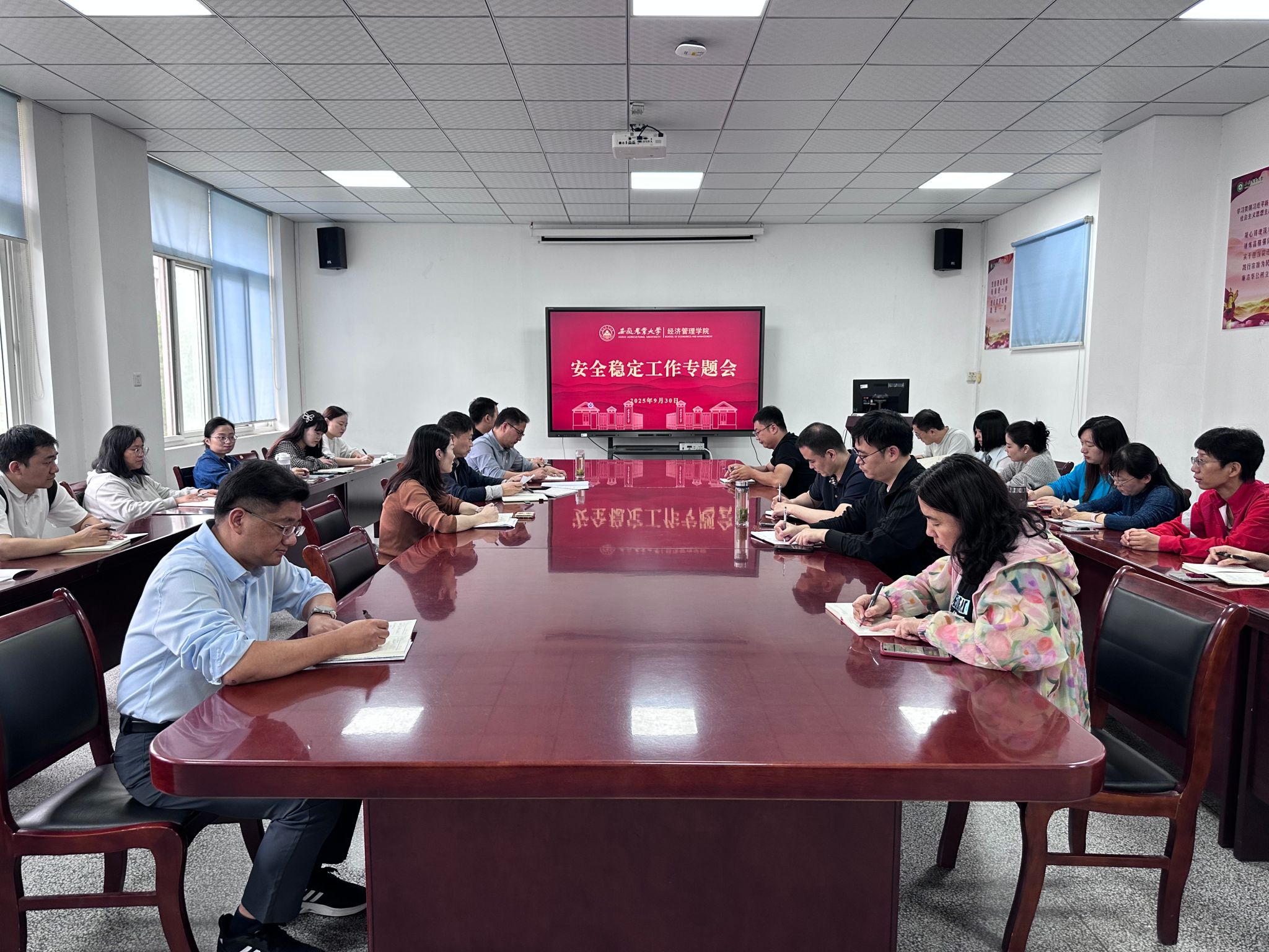 会议强调,要以“时时放心不下”的责任感筑牢安全防线,严格落实值班值守制度,做好突发情况应急处理,规范教职工离肥报备流程,动态掌握人员去向,精准做好学生离返校情况统计,全面摸排学生假期去向,同时做好交通安全、反诈防骗、文明用网等安全提醒,坚决杜绝漏管、失控问题;要以“严之又严”的纪律性绷紧廉洁之弦,通过节前提醒、典型案例警示,严明纪律要求,提醒全体教职工自觉规范言行,以良好师德师风传递正能量,加强网络舆情管控,做好学院网络平台巡查,维护学院良好形象和舆论环境;要以“久久为功”的执行力推进内涵发展,深入挖掘学院办学特色亮点,持续推进会计专业认证、研究生招生宣传、高层次人才引进、博士后流动站建设等工作,为学院学科建设、人才培养、科学研究等注入新动能。